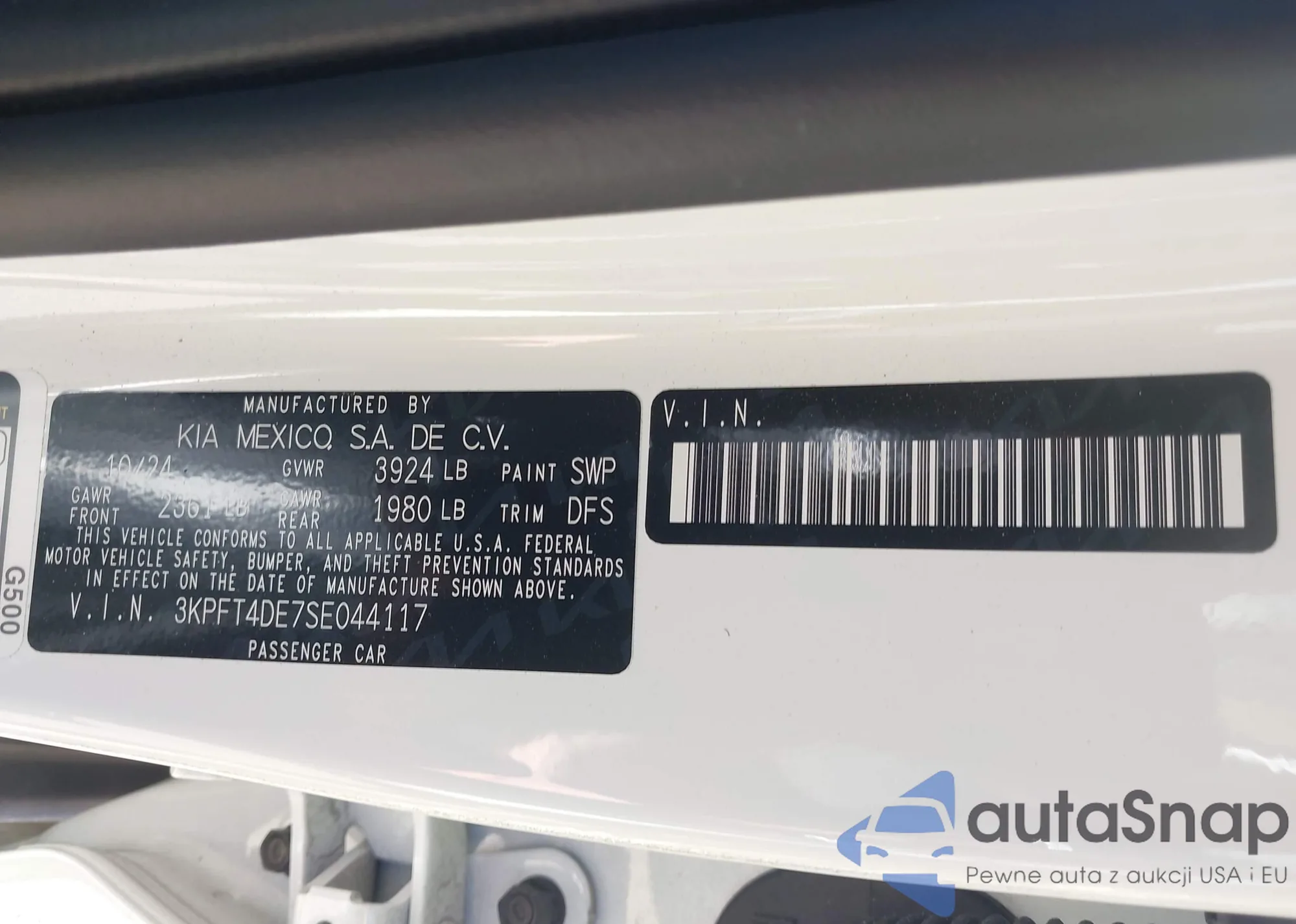 • VIN 3KPFT4DE7SE044117