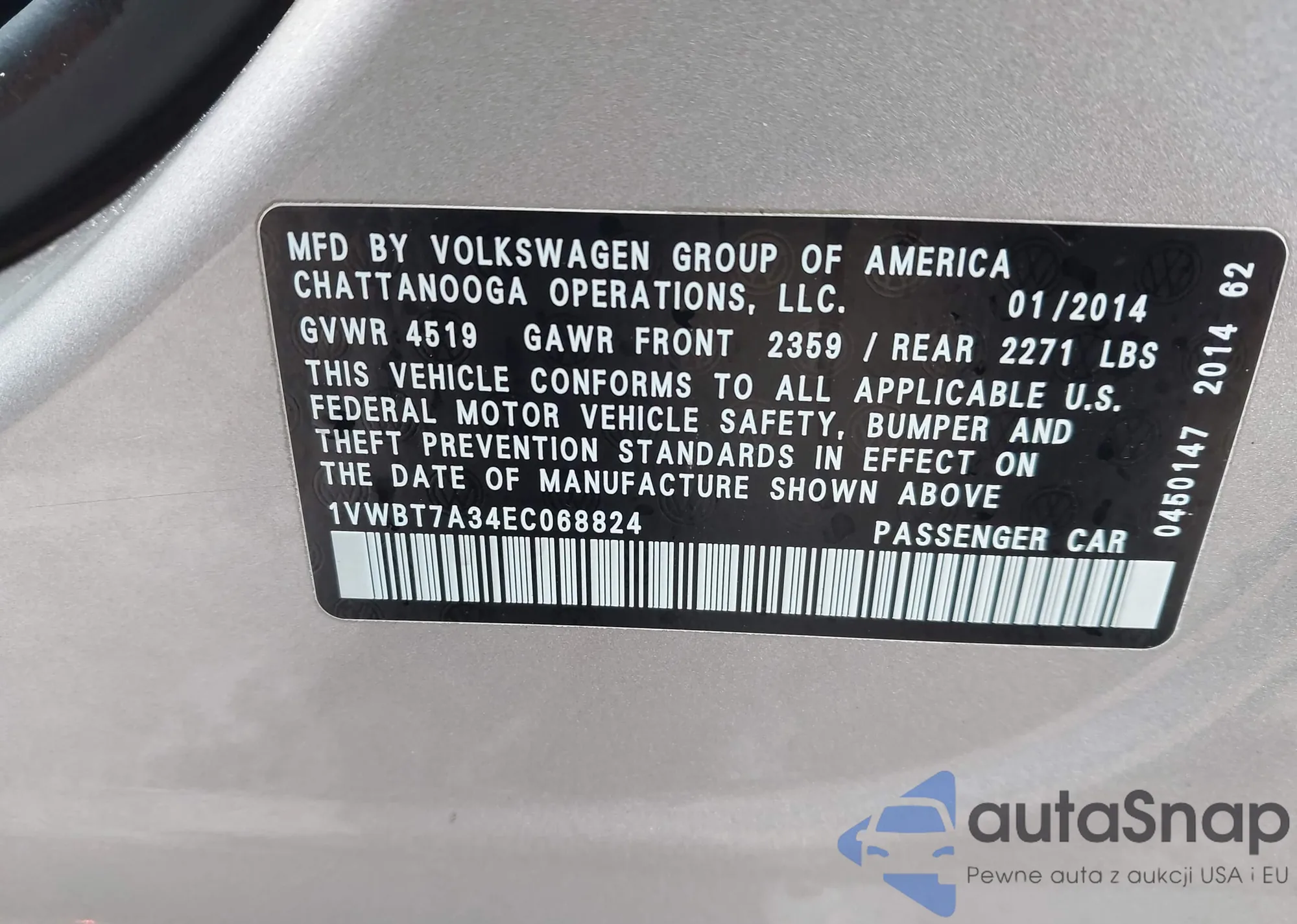 • VIN 1VWBT7A34EC068824