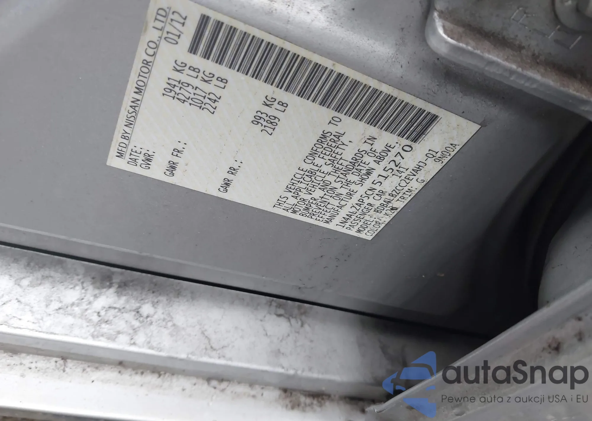 LOT: 43746629 VIN: 1N4AL2AP5CN515270