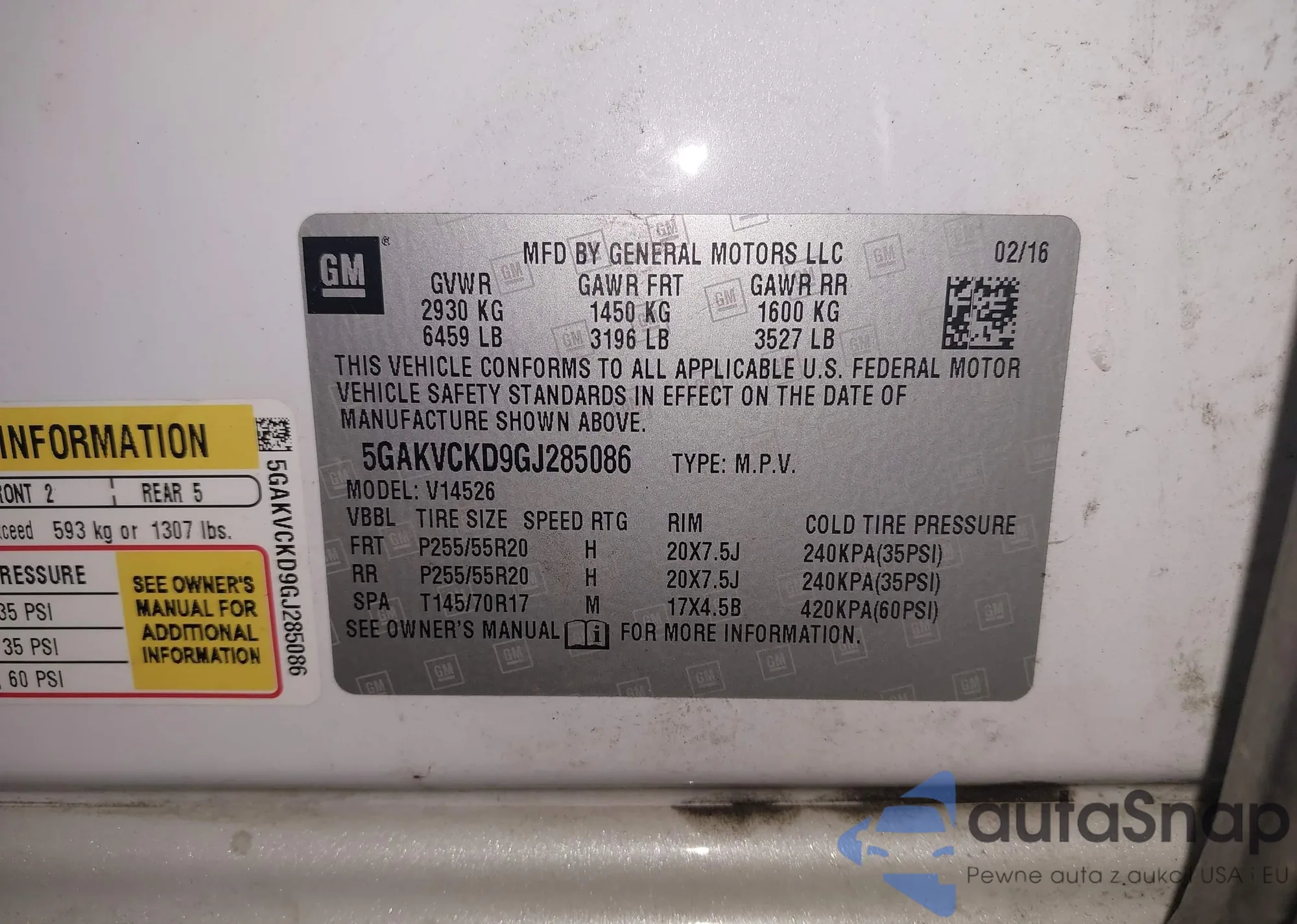 • VIN 5GAKVCKD9GJ285086