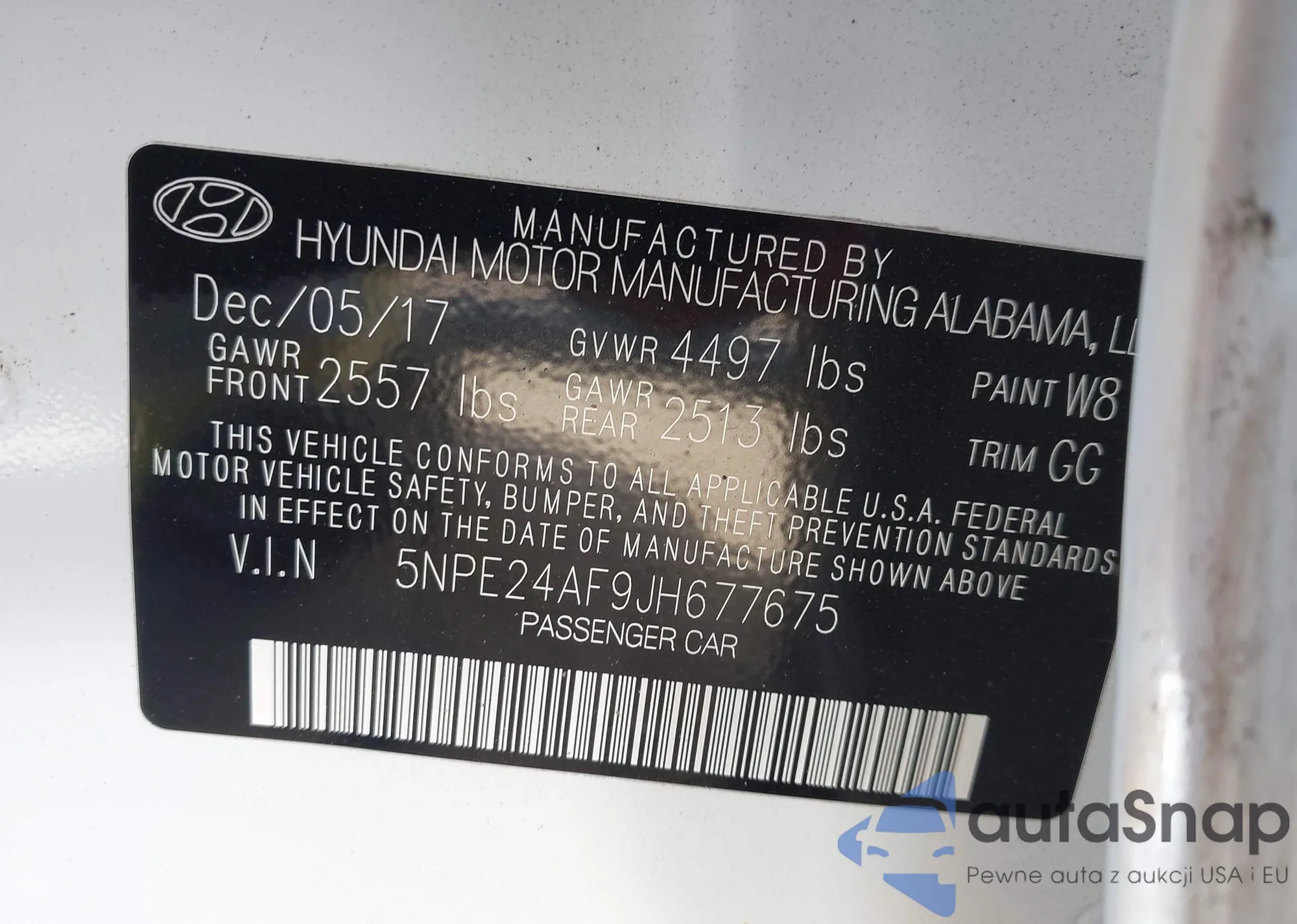LOT: 43168995 VIN: 5NPE24AF9JH677675