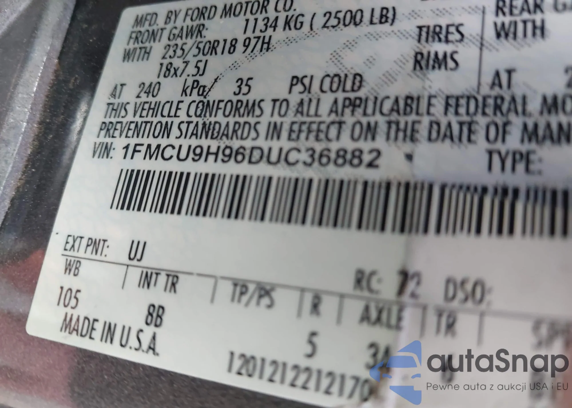 LOT: 43728311 VIN: 1FMCU9H96DUC36882