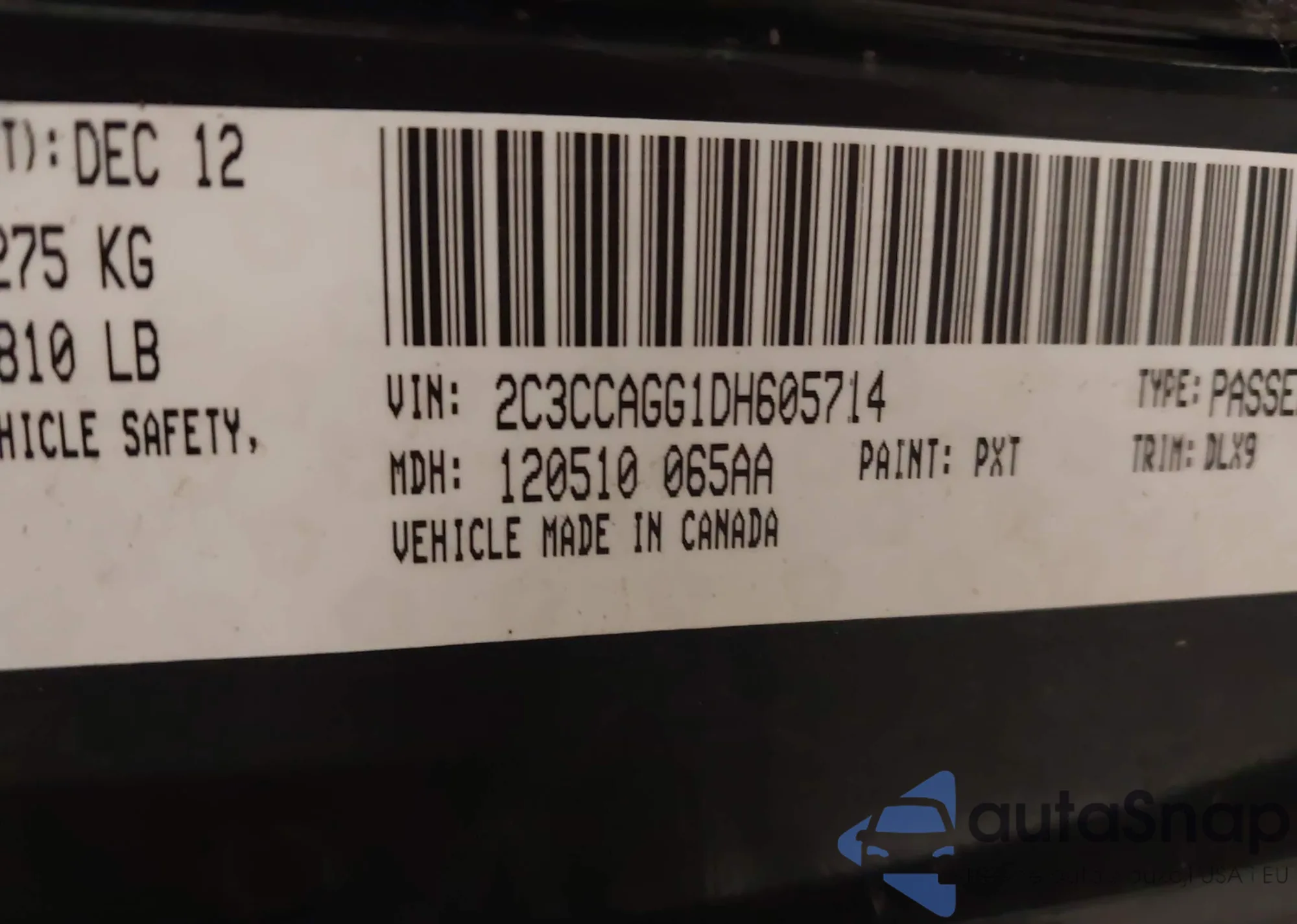• VIN 2C3CCAGG1DH605714