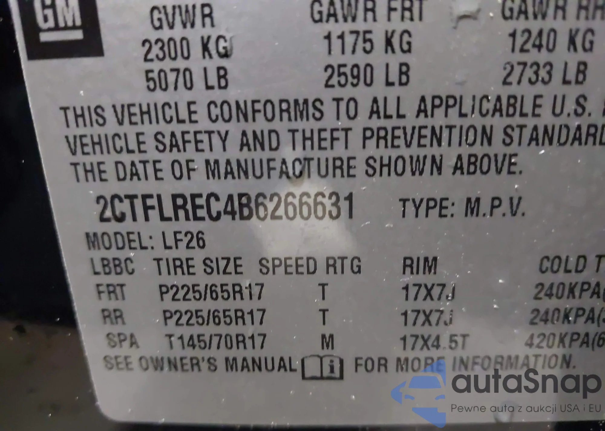 • VIN 2CTFLREC4B6266631