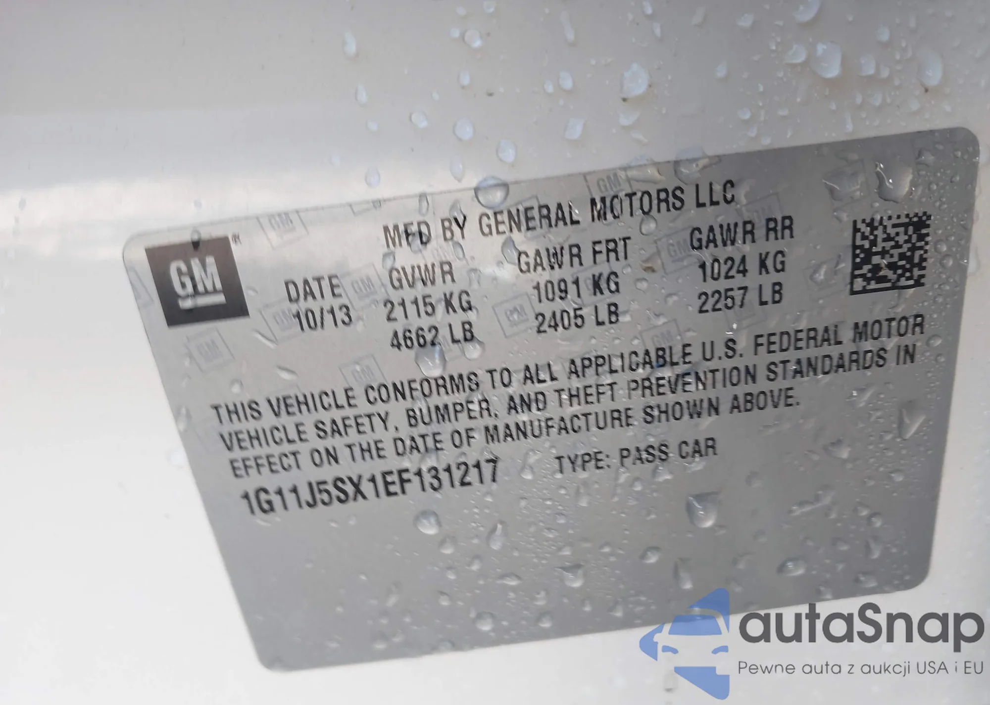LOT: 43813952 VIN: 1G11J5SX1EF131217