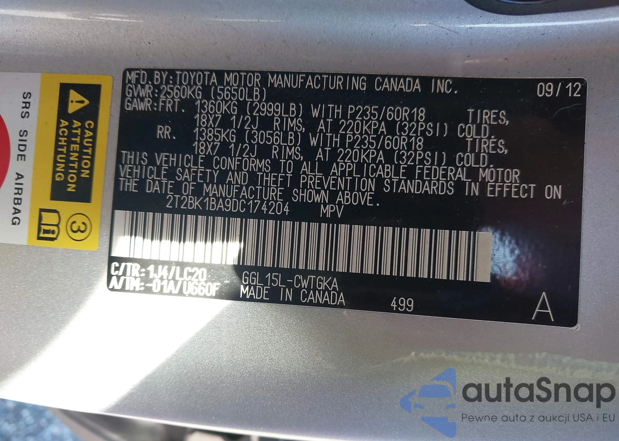 • VIN 2T2BK1BA9DC174204
