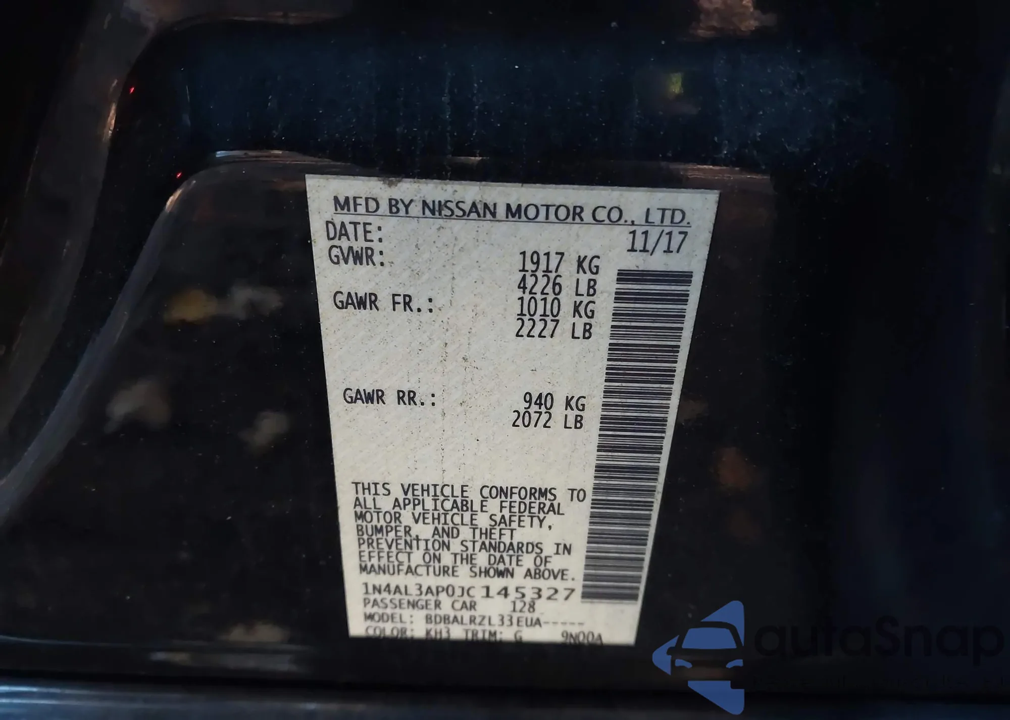 LOT: 43623465 VIN: 1N4AL3AP0JC145327