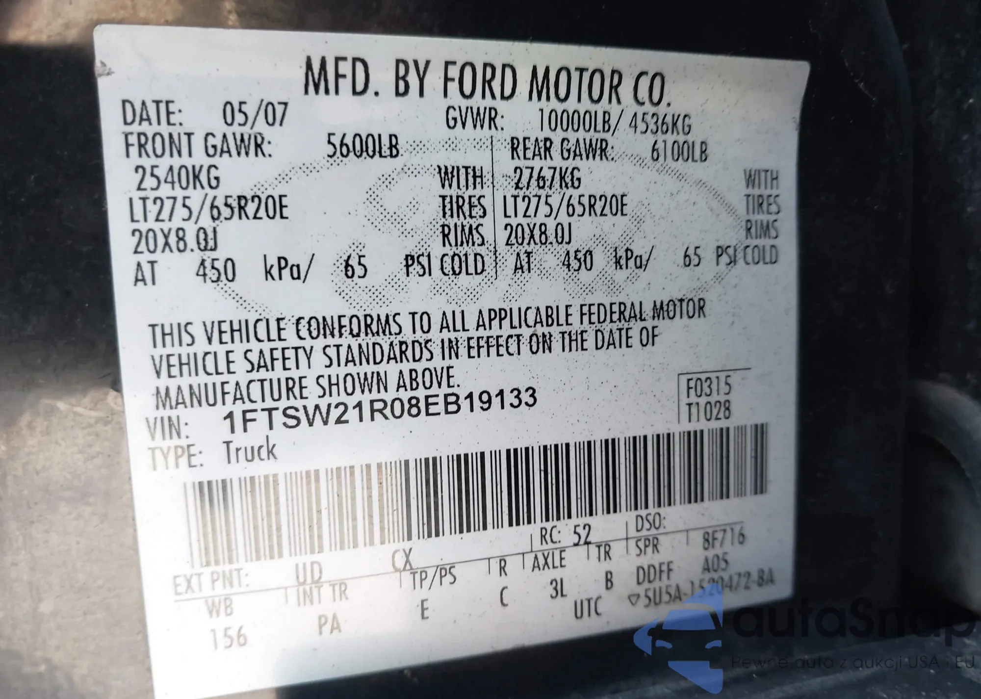LOT: 43979757 VIN: 1FTSW21R08EB19133