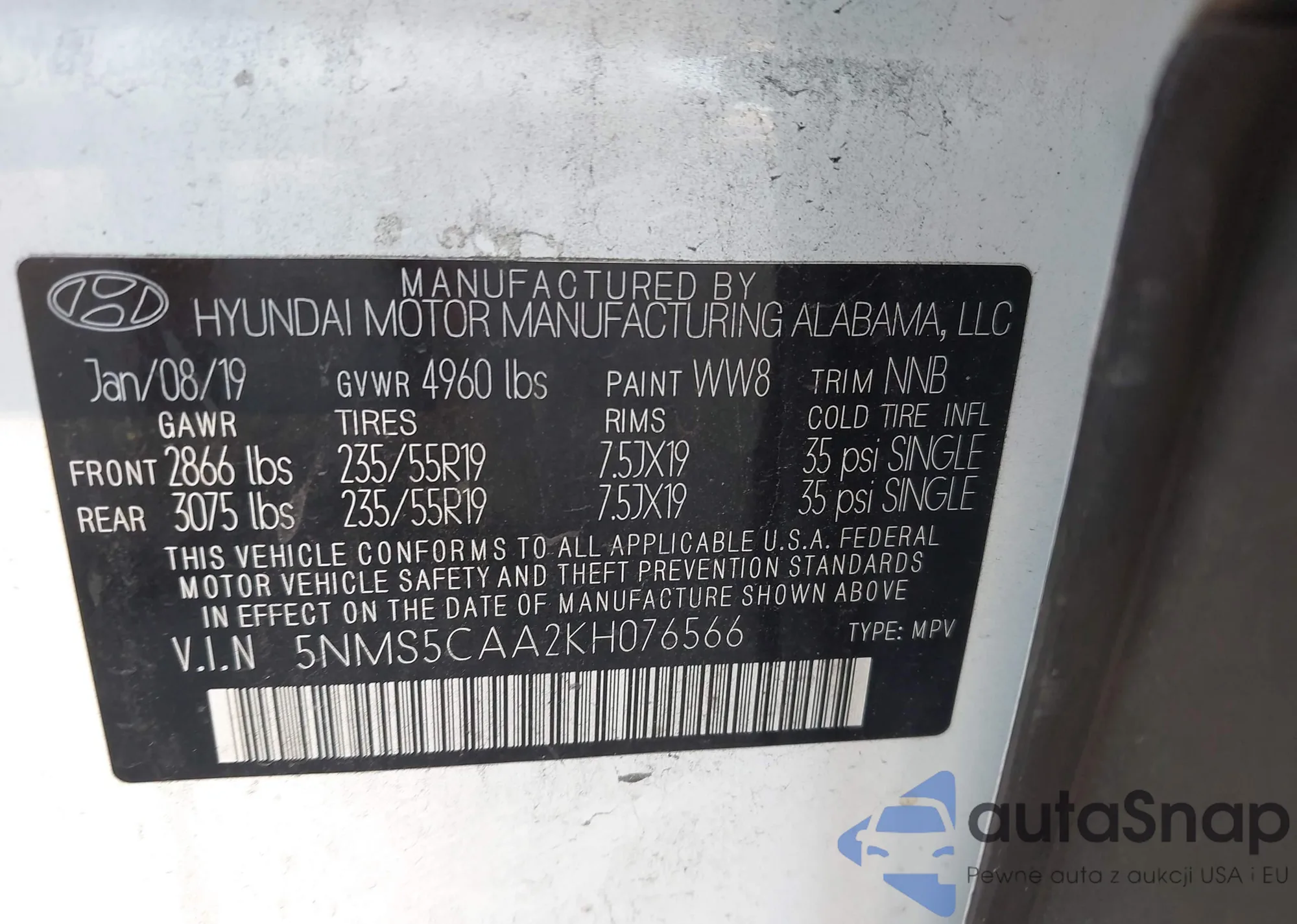 LOT: 43777595 VIN: 5NMS5CAA2KH076566