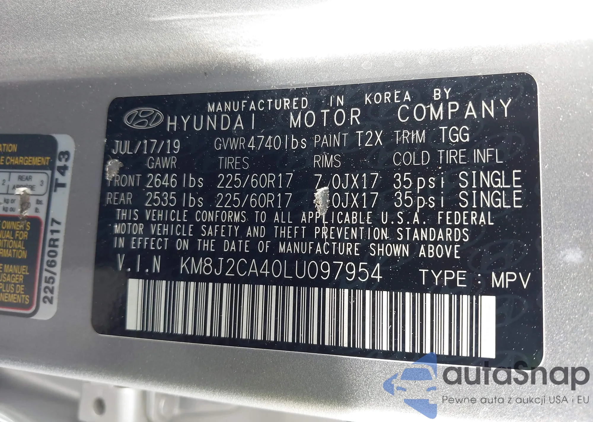 LOT: 43889611 VIN: KM8SR4HF3FU094709