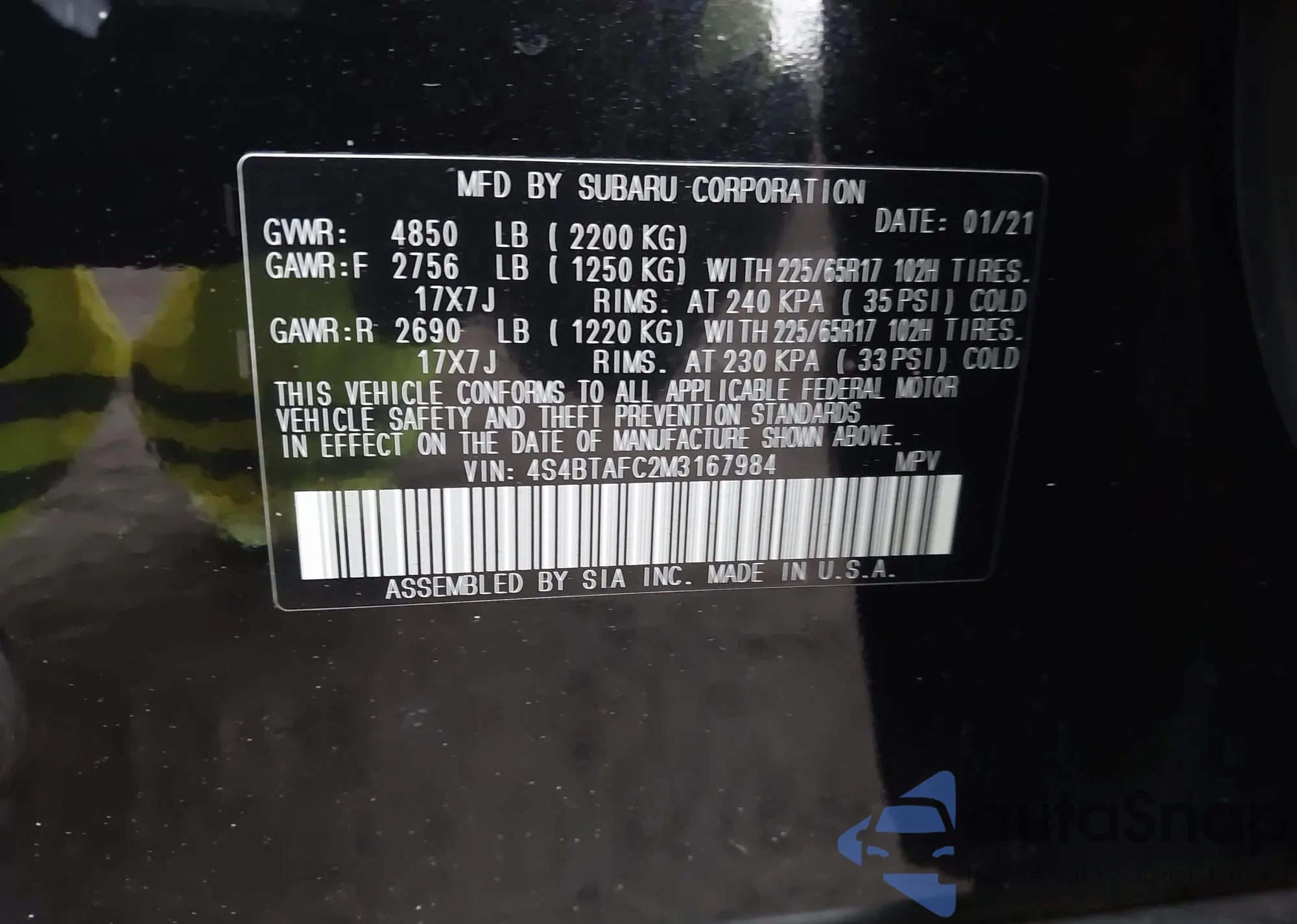 • VIN 4S4BTAFC2M3167984