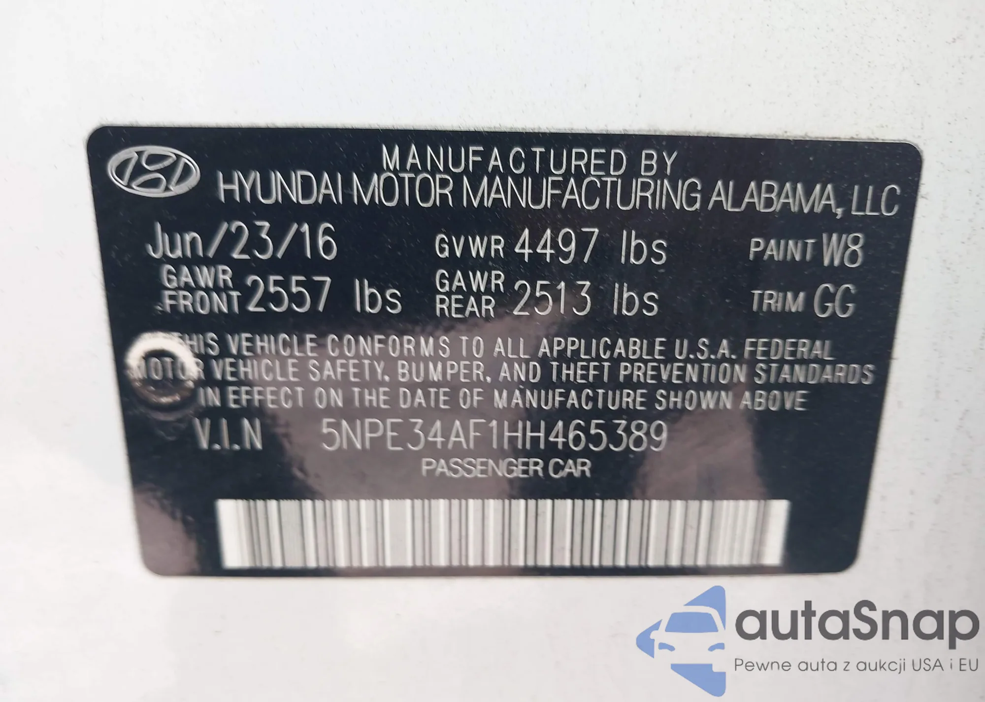 • VIN 5NPE34AF1HH465389