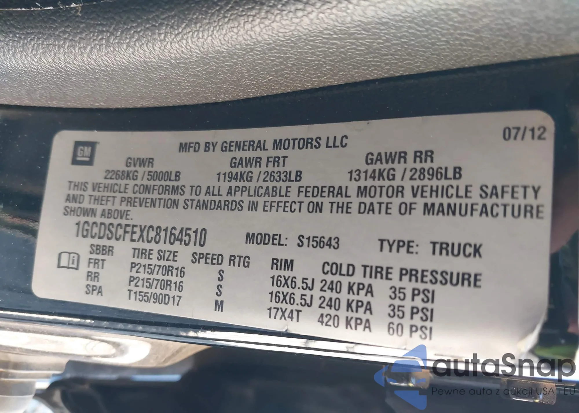 LOT: 43928446 VIN: 1GCDSCFEXC8164510
