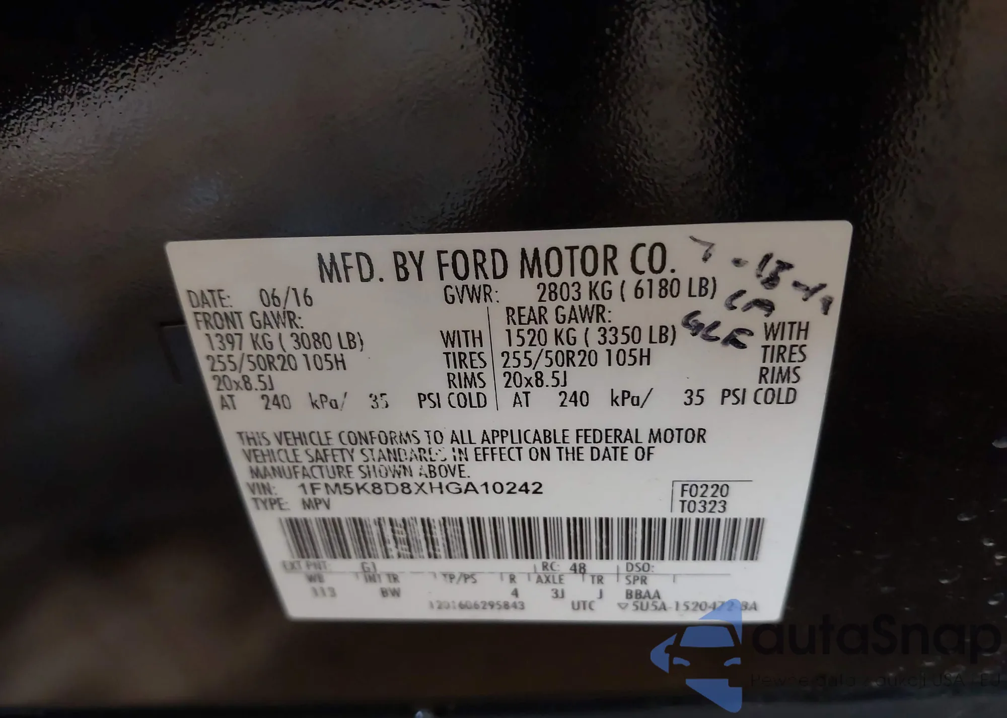 • VIN 1FM5K8D8XHGA10242