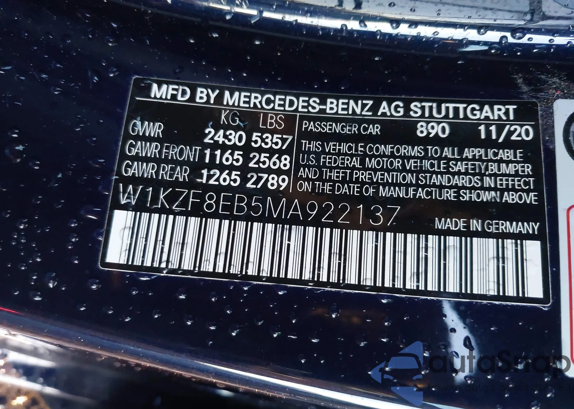 • VIN W1KZF8EB5MA922137
