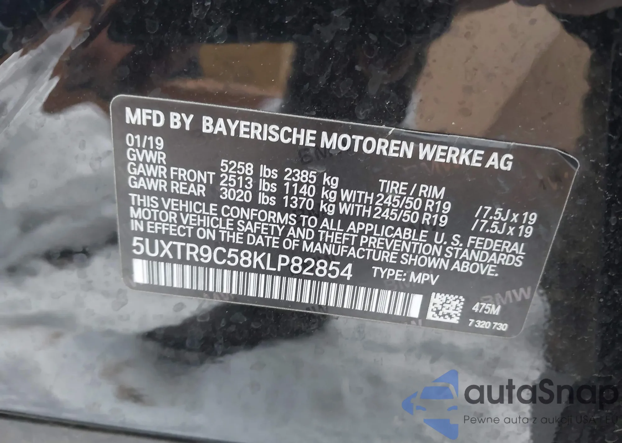 LOT: 43817225 VIN: 5UXTR9C58KLP82854