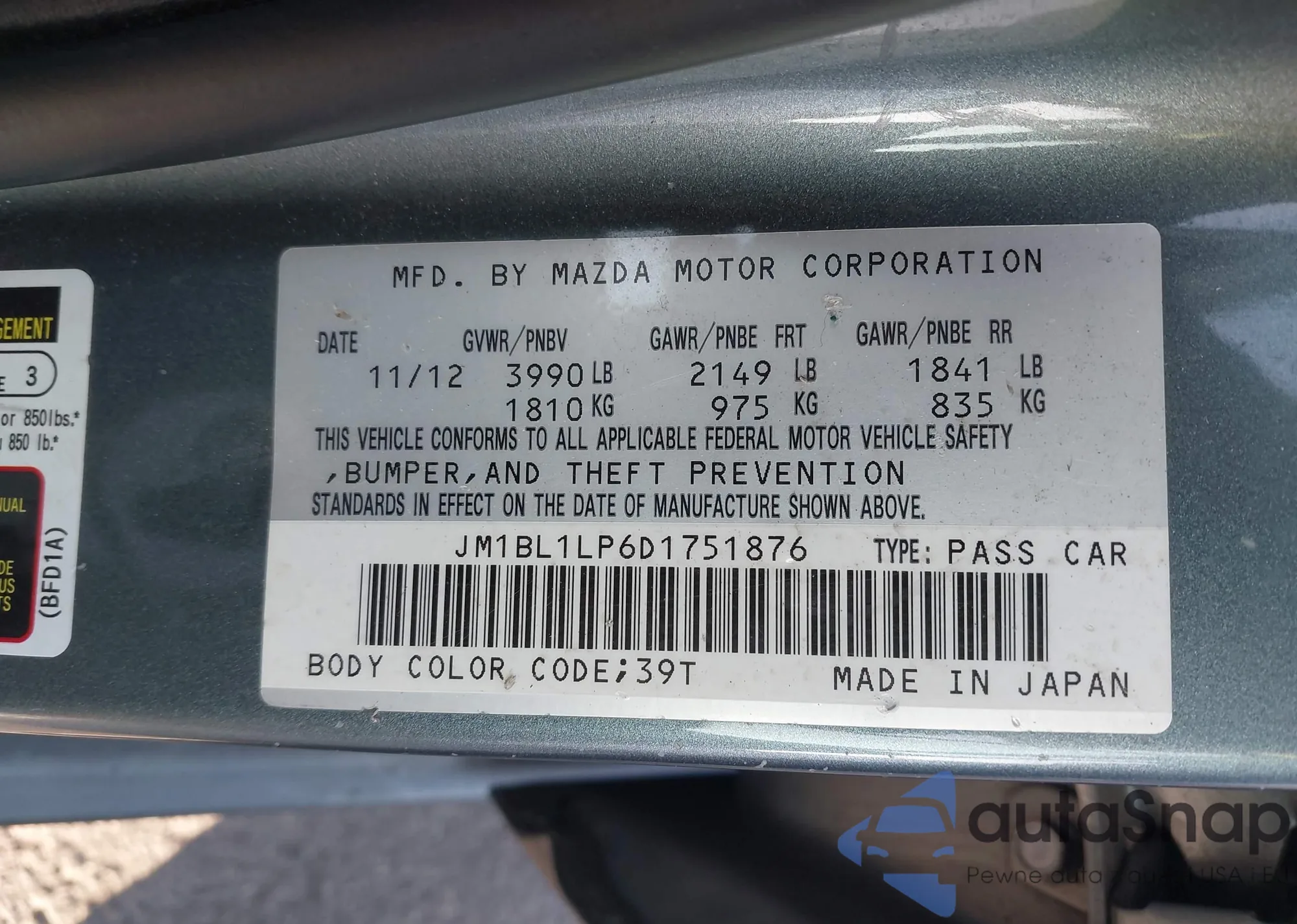 • VIN 5YFBU4EE9CP071877