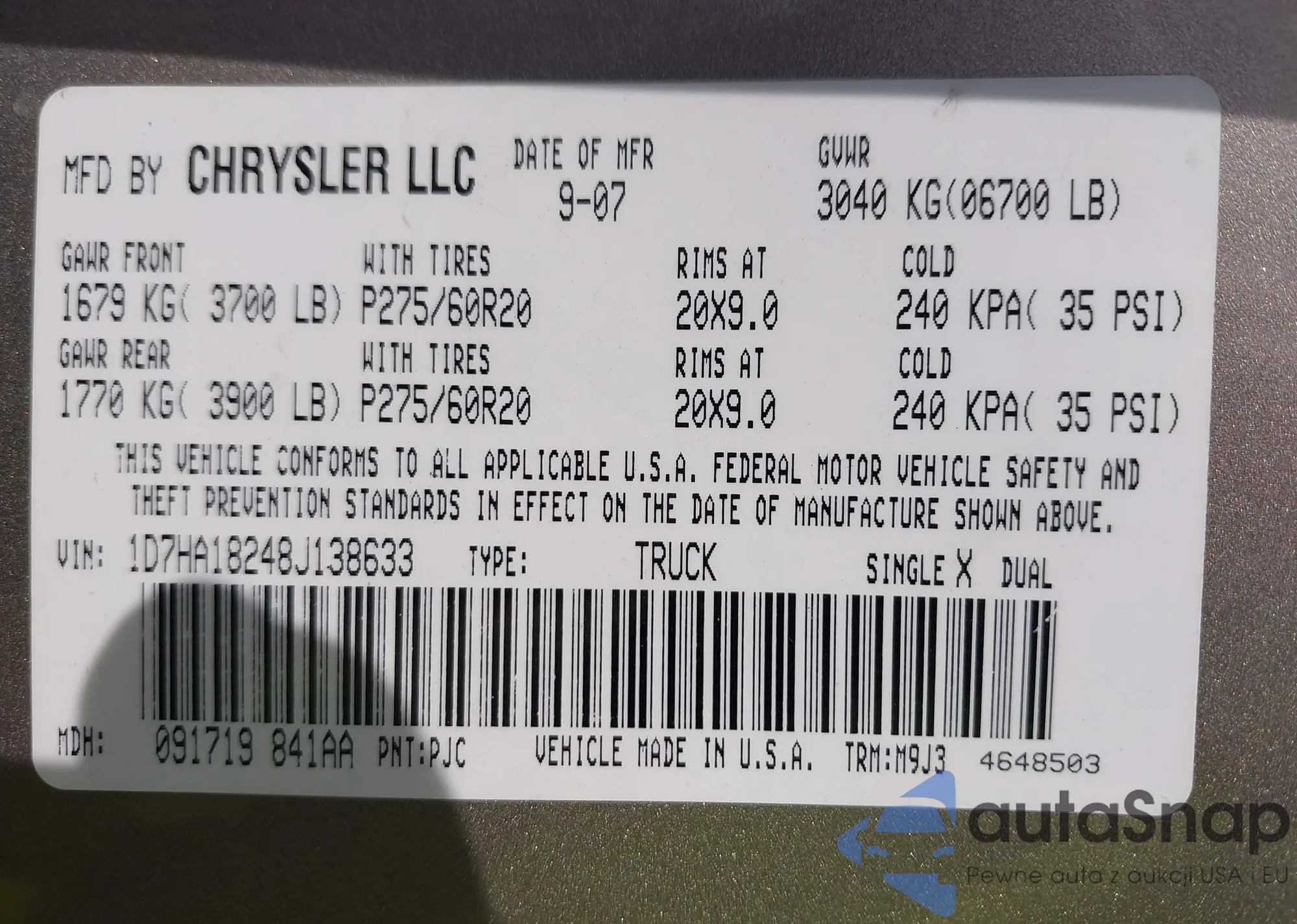 • VIN 1D7HA18248J138633