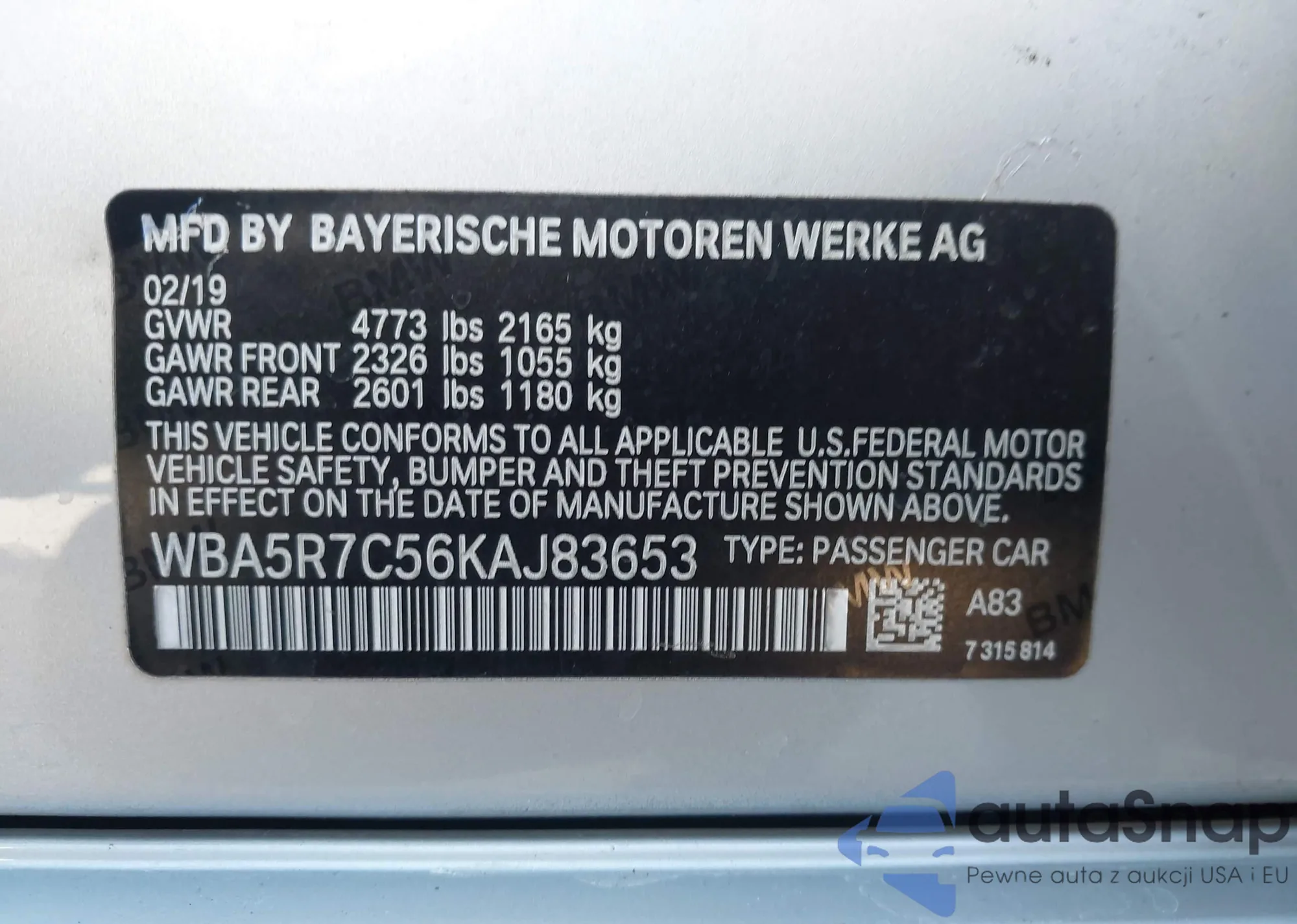 • VIN WBA13BJ00MCG44284