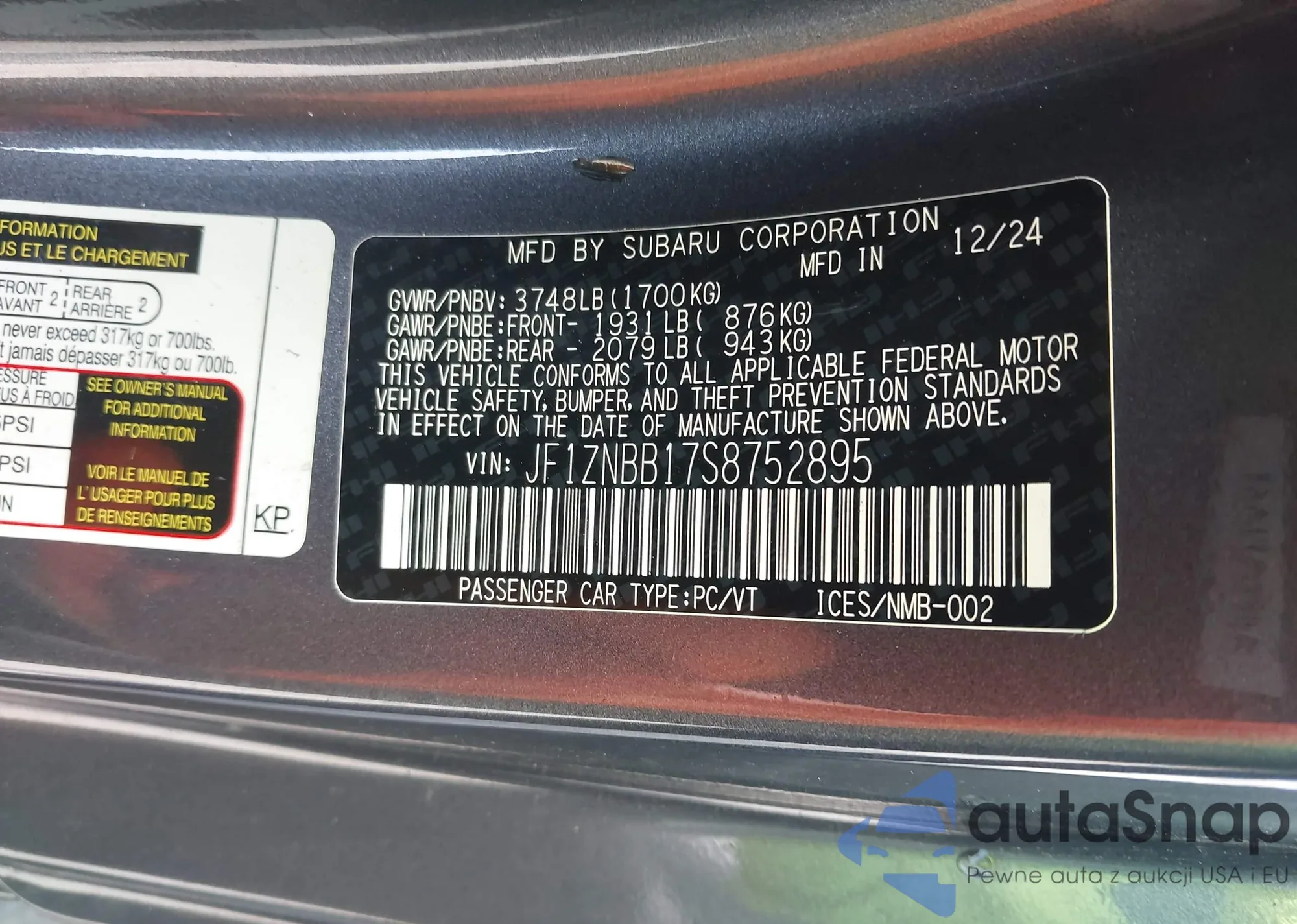 LOT: 43531002 VIN: JF1ZNBB17S8752895