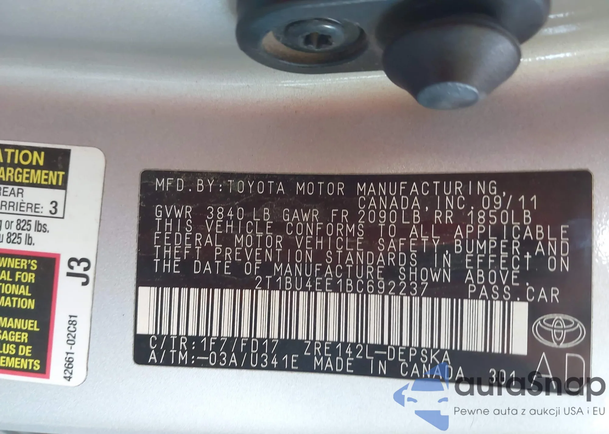• VIN 2T1BU4EE1BC692237