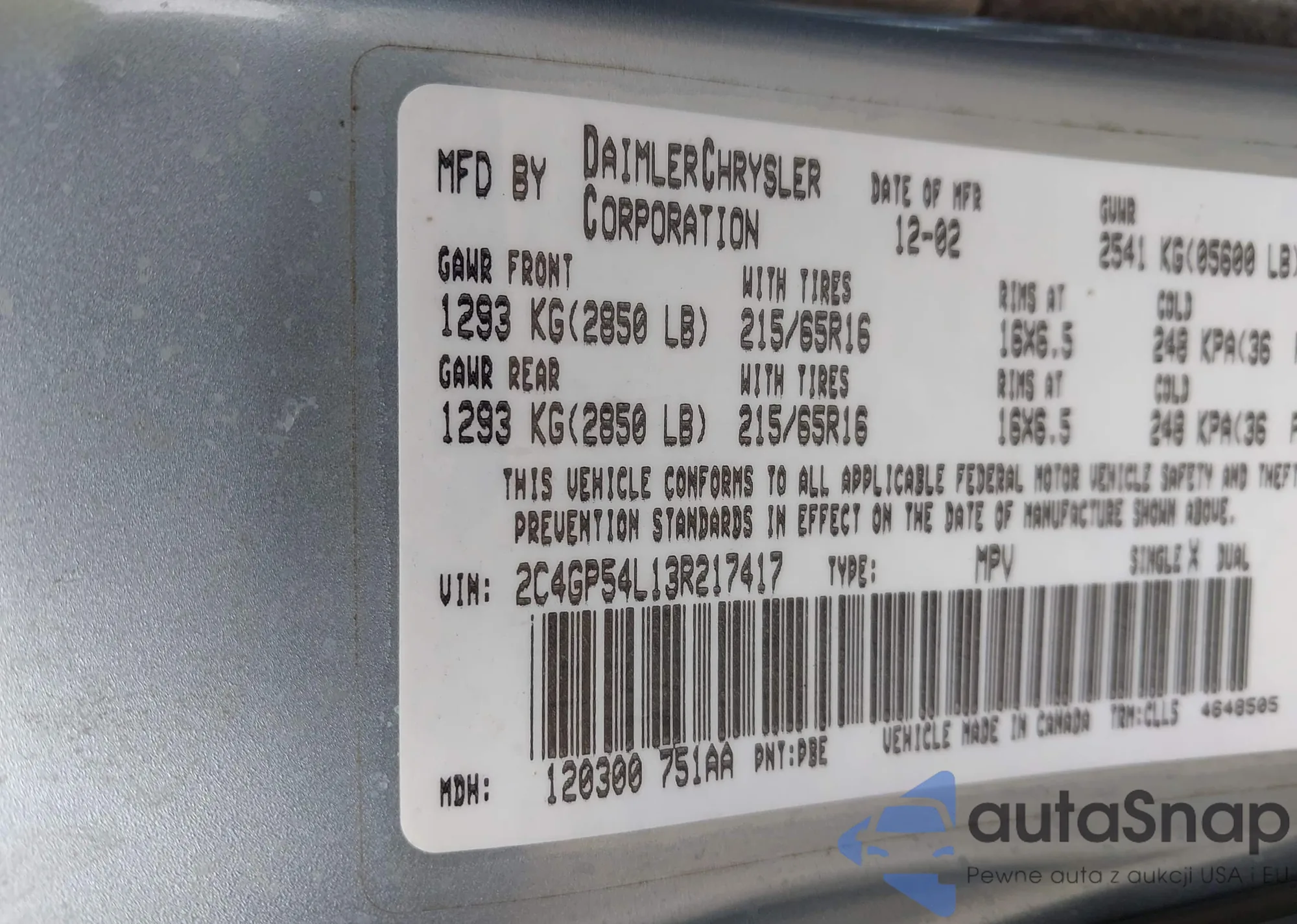 • VIN 2C4GP54L13R217417