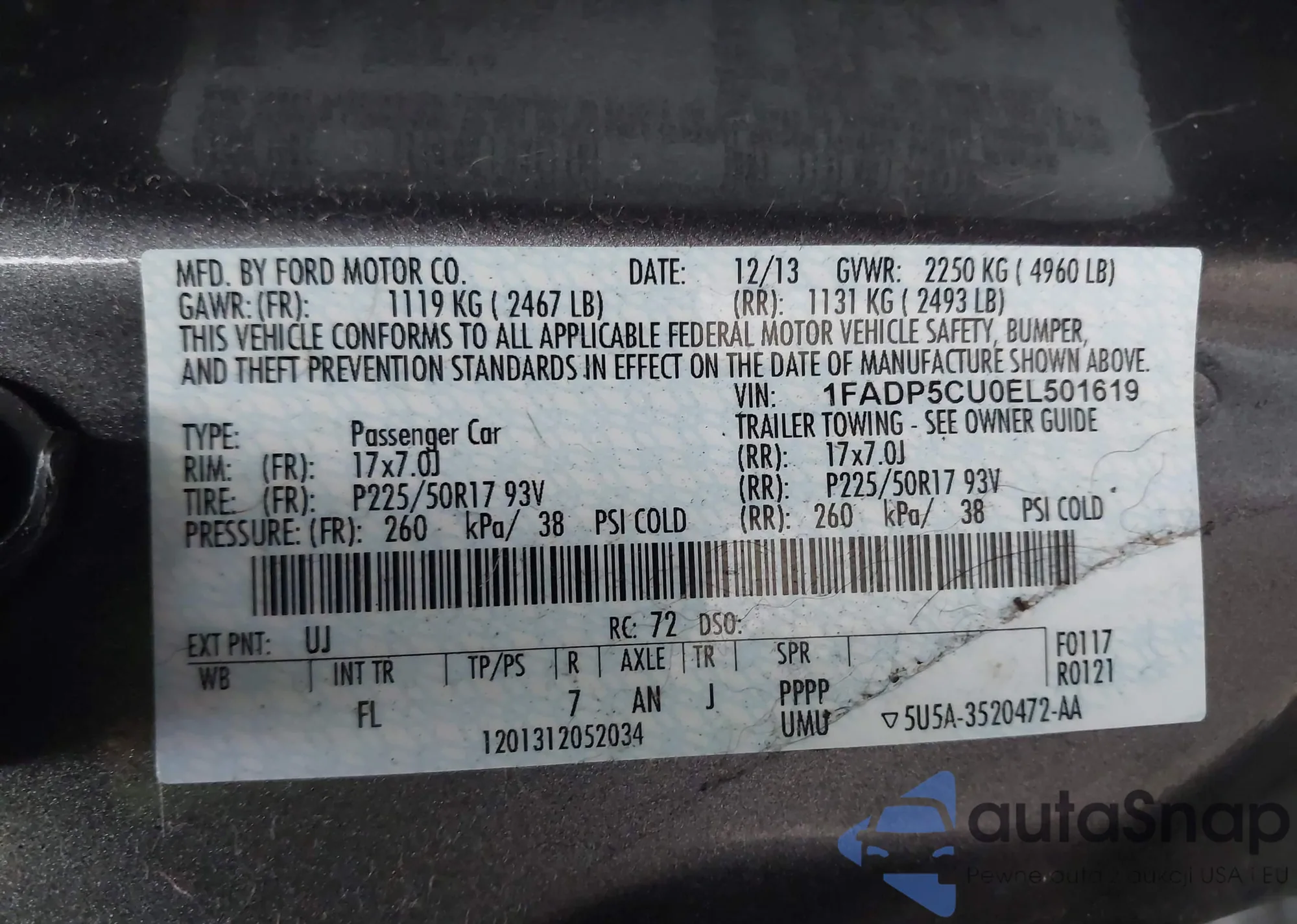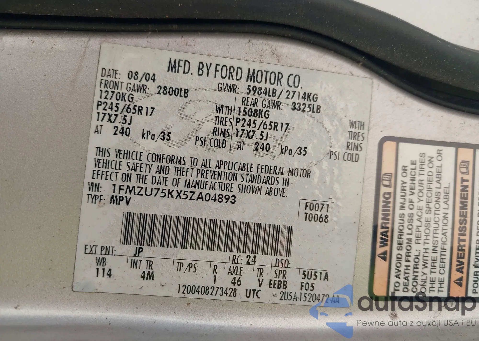LOT: 43733936 VIN: 1FMFU18528LA15240
