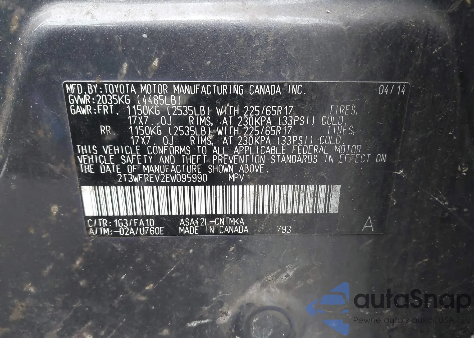 • VIN 4T3RWRFV9NU056826