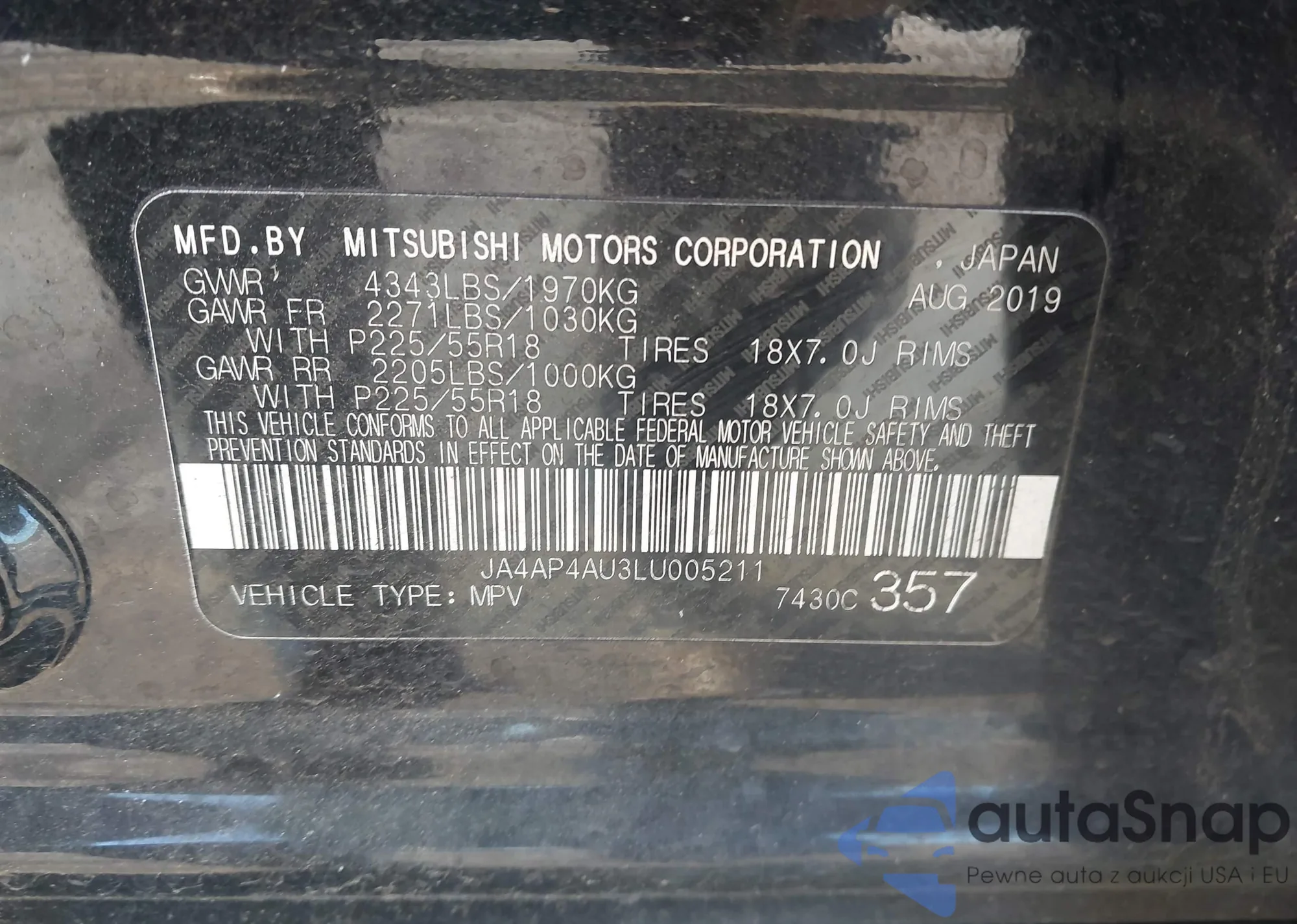 LOT: 43934712 VIN: JA4AP4AU3LU005211