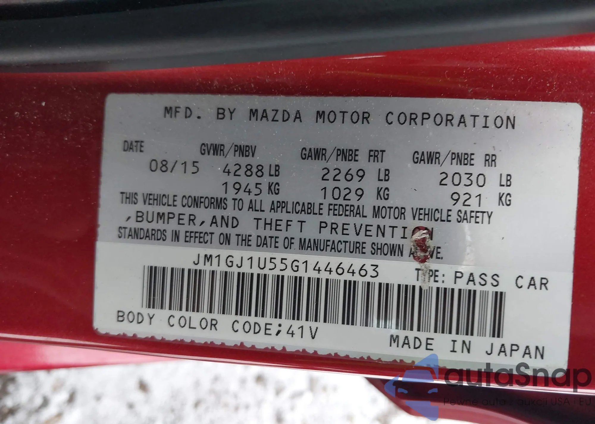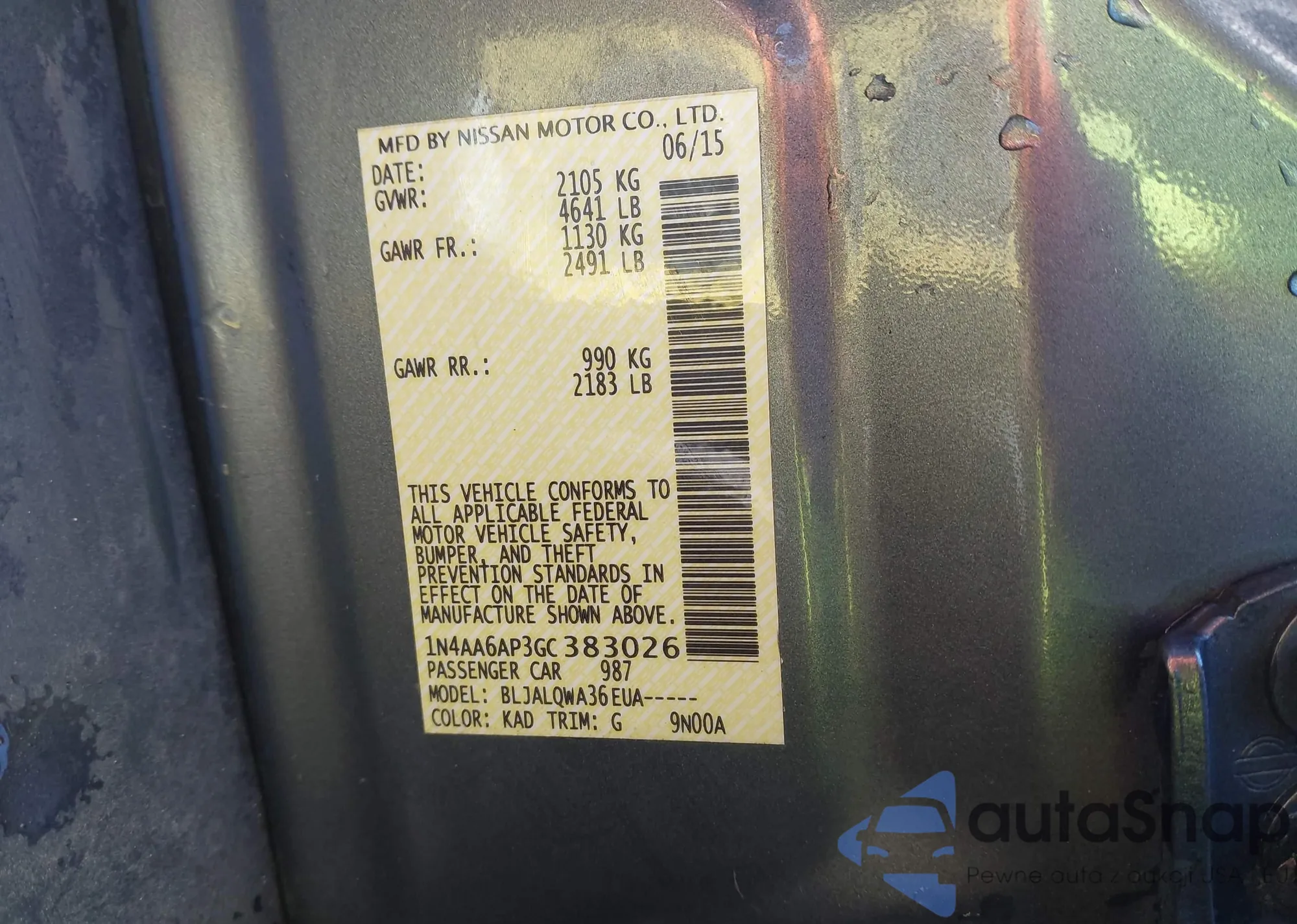 • VIN 1N4AA6AP3GC383026