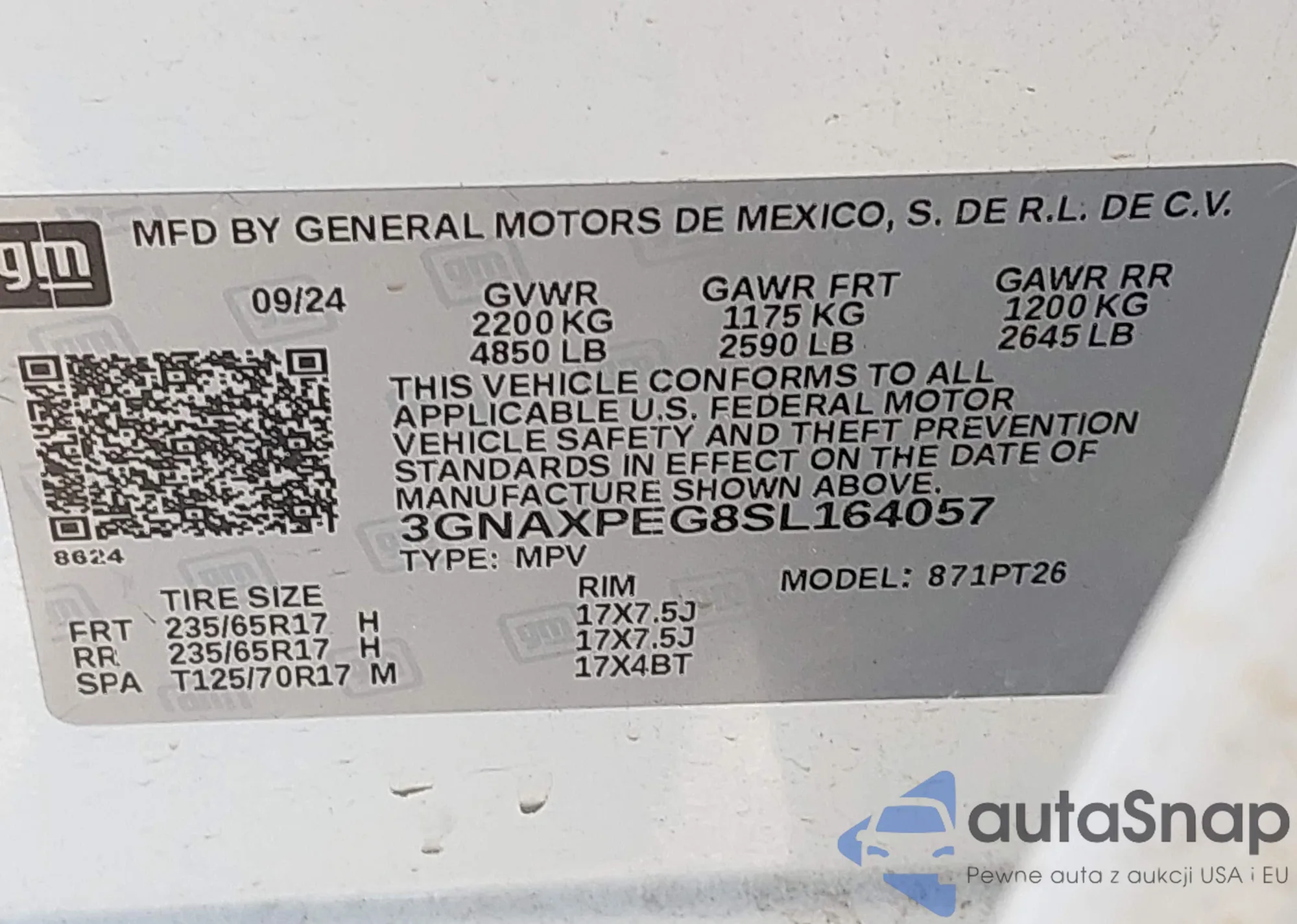 • VIN 3GNAXPEG8SL164057