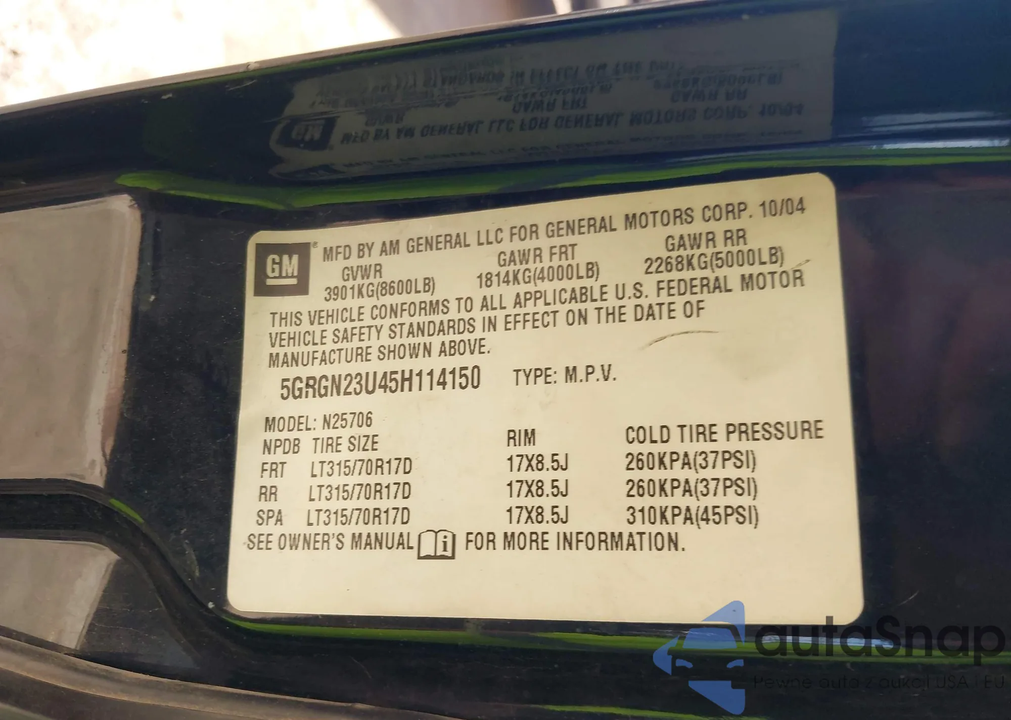 • VIN 5GRGN23U45H114150