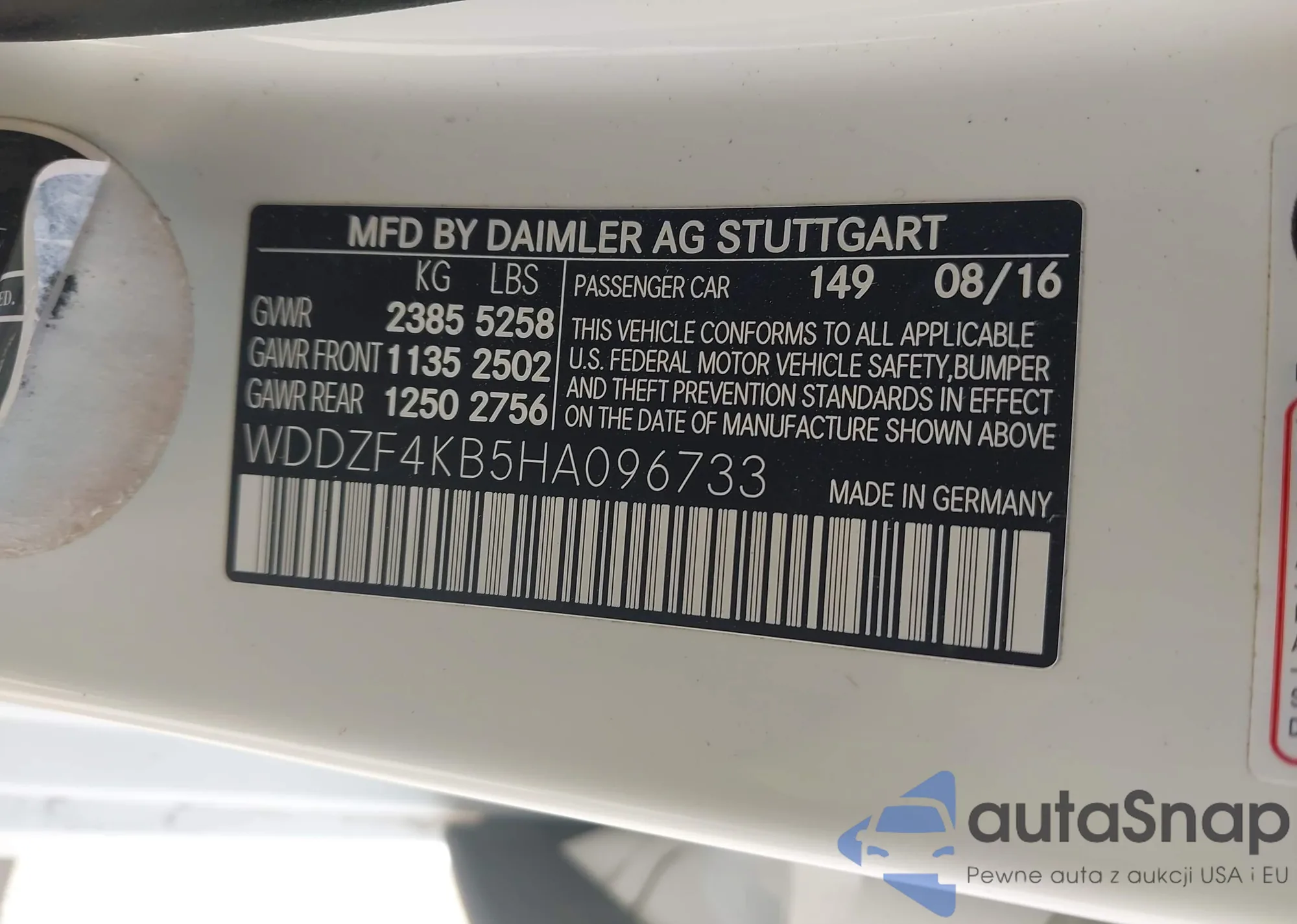• VIN WDDZF4KB5HA096733