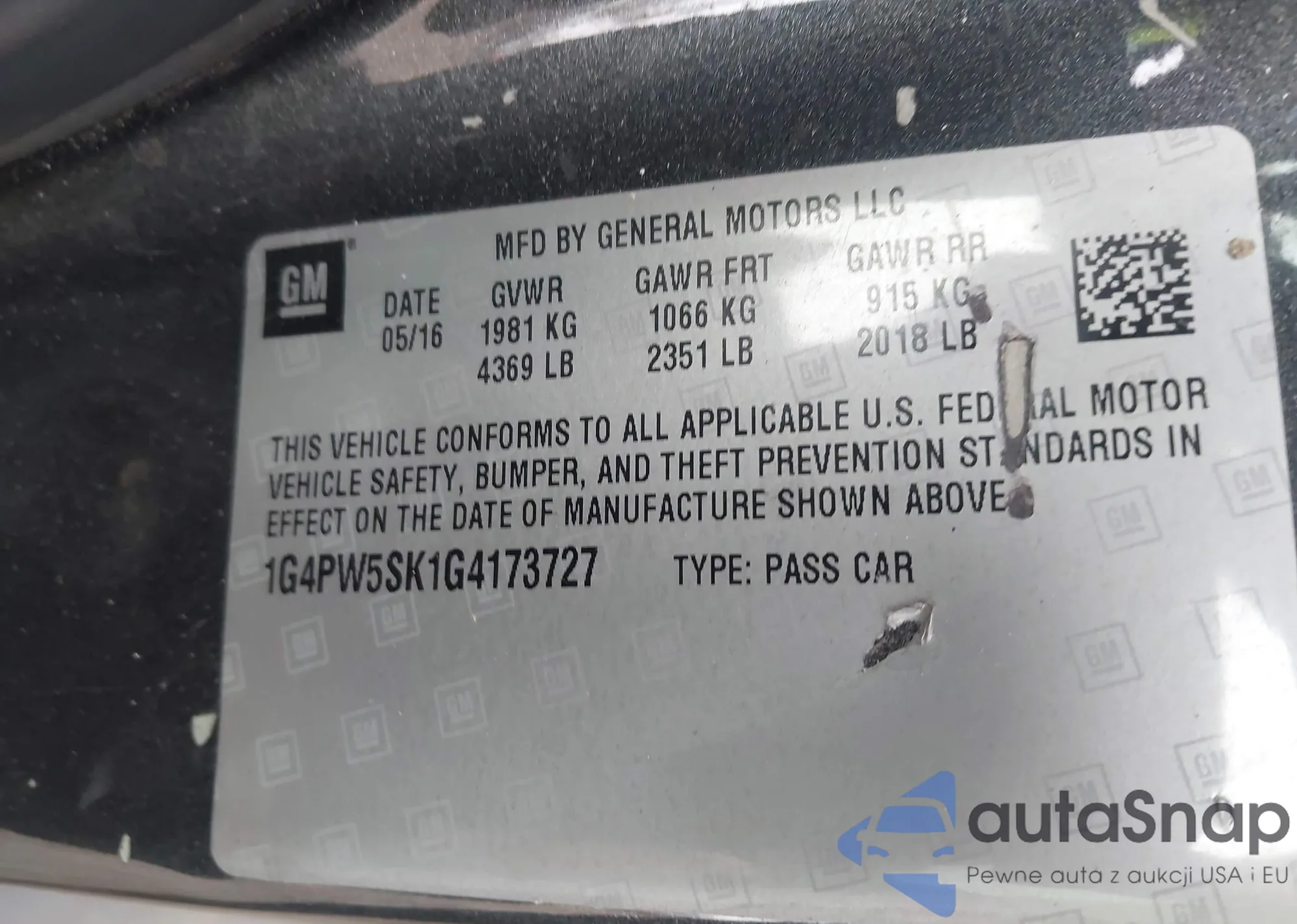 • VIN 1G4PW5SK1G4173727