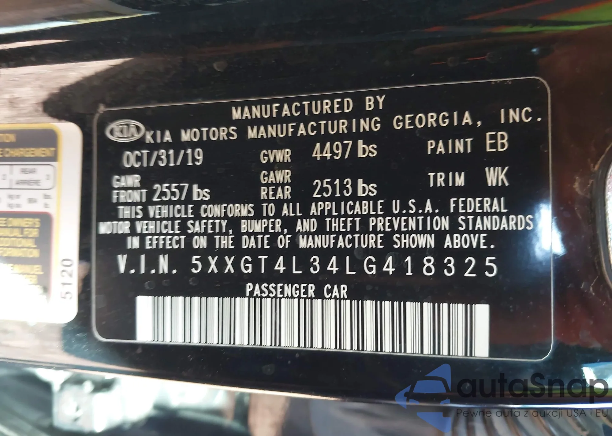 • VIN 5XYZUDLB5EG165981