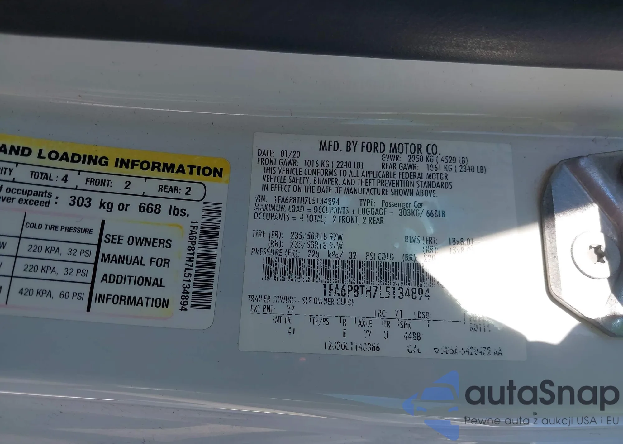 LOT: 43805458 VIN: 1FA6P8TH7L5134894