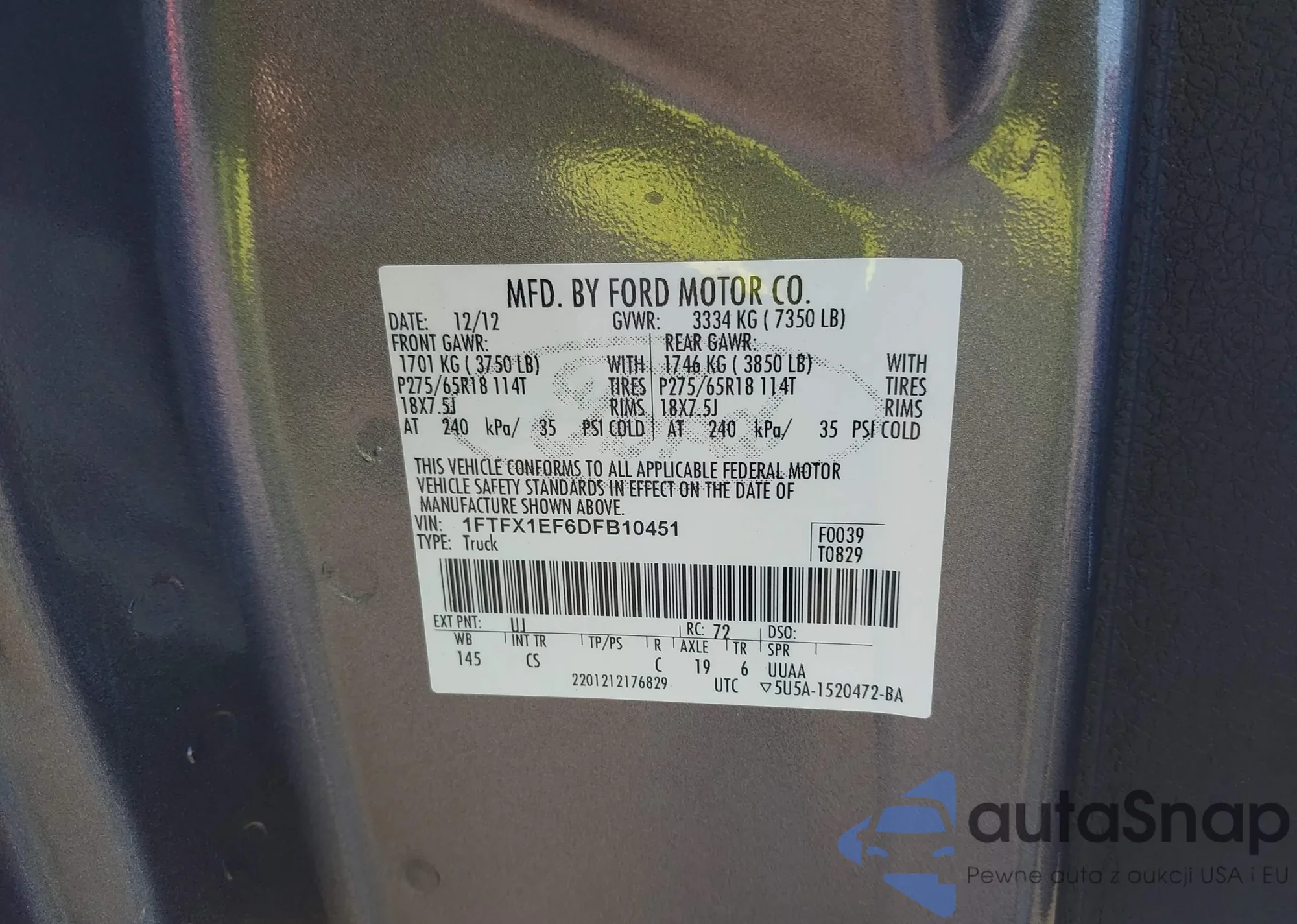 • VIN 1FTFX1EF6DFB10451