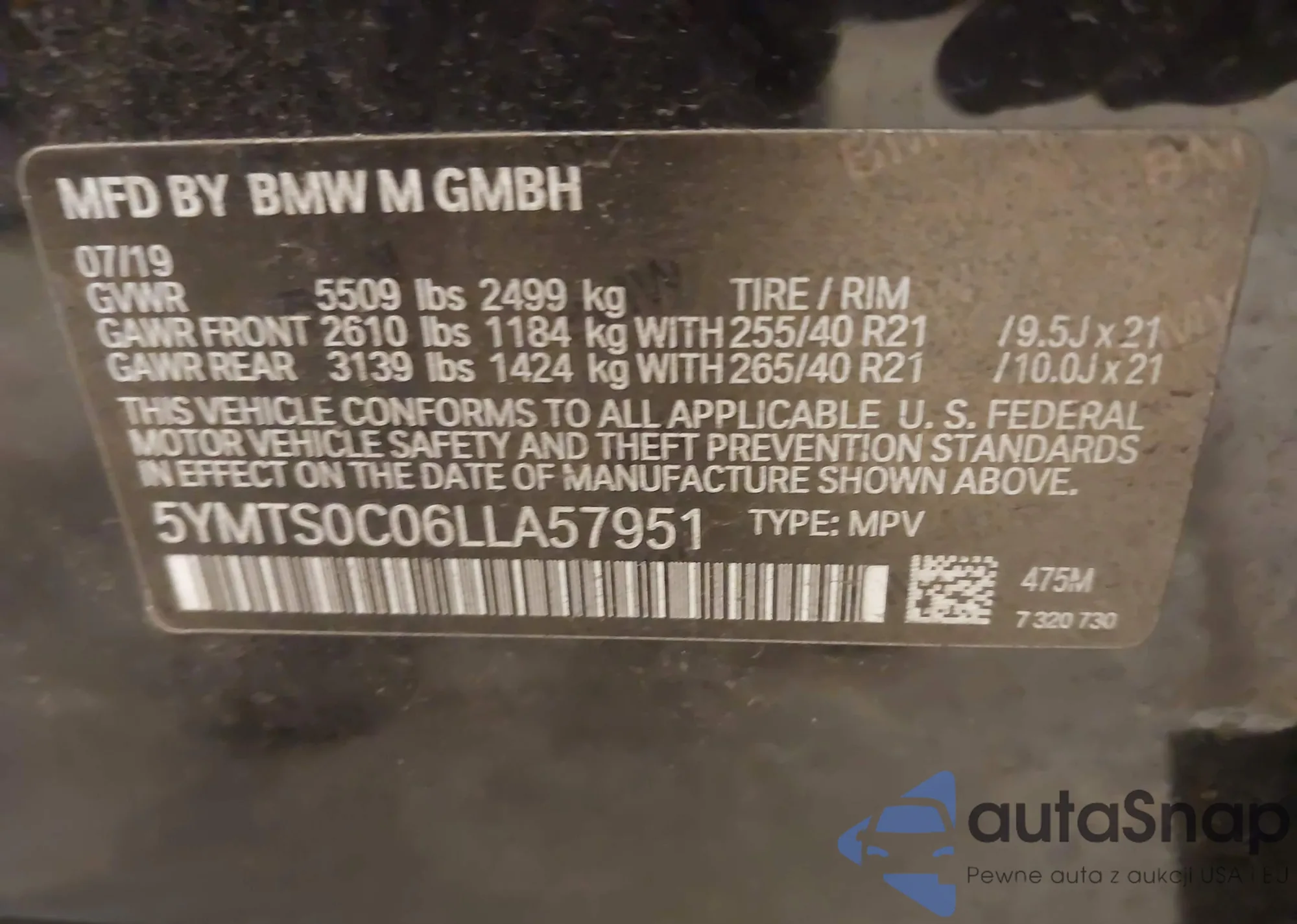 LOT: 43896602 VIN: 5YMTS0C06LLA57951