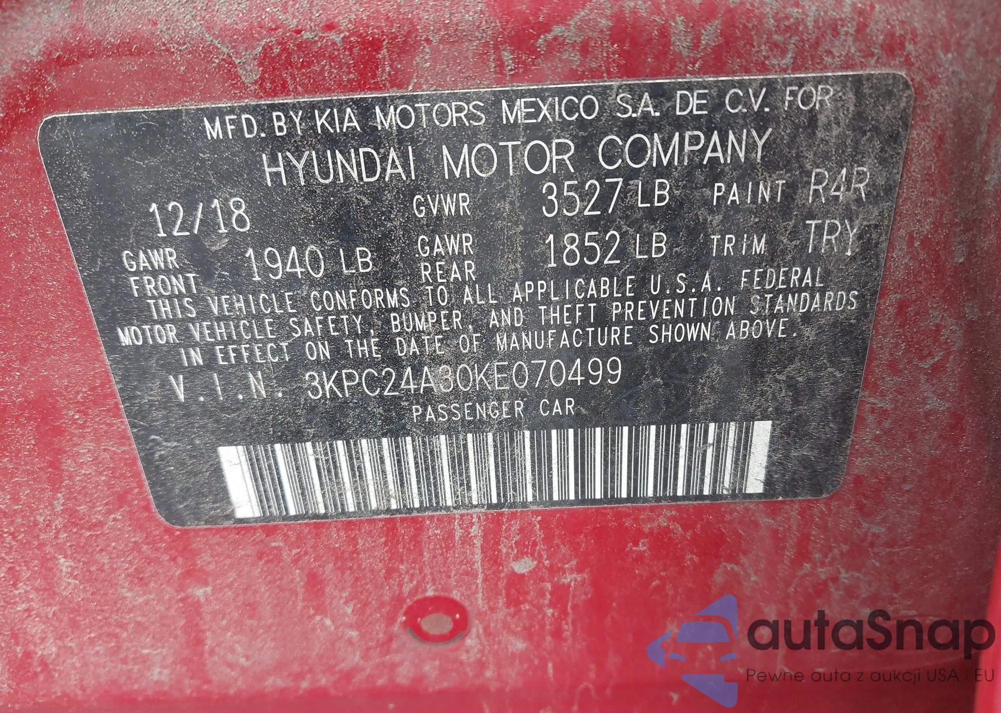• VIN 3KPC24A30KE070499