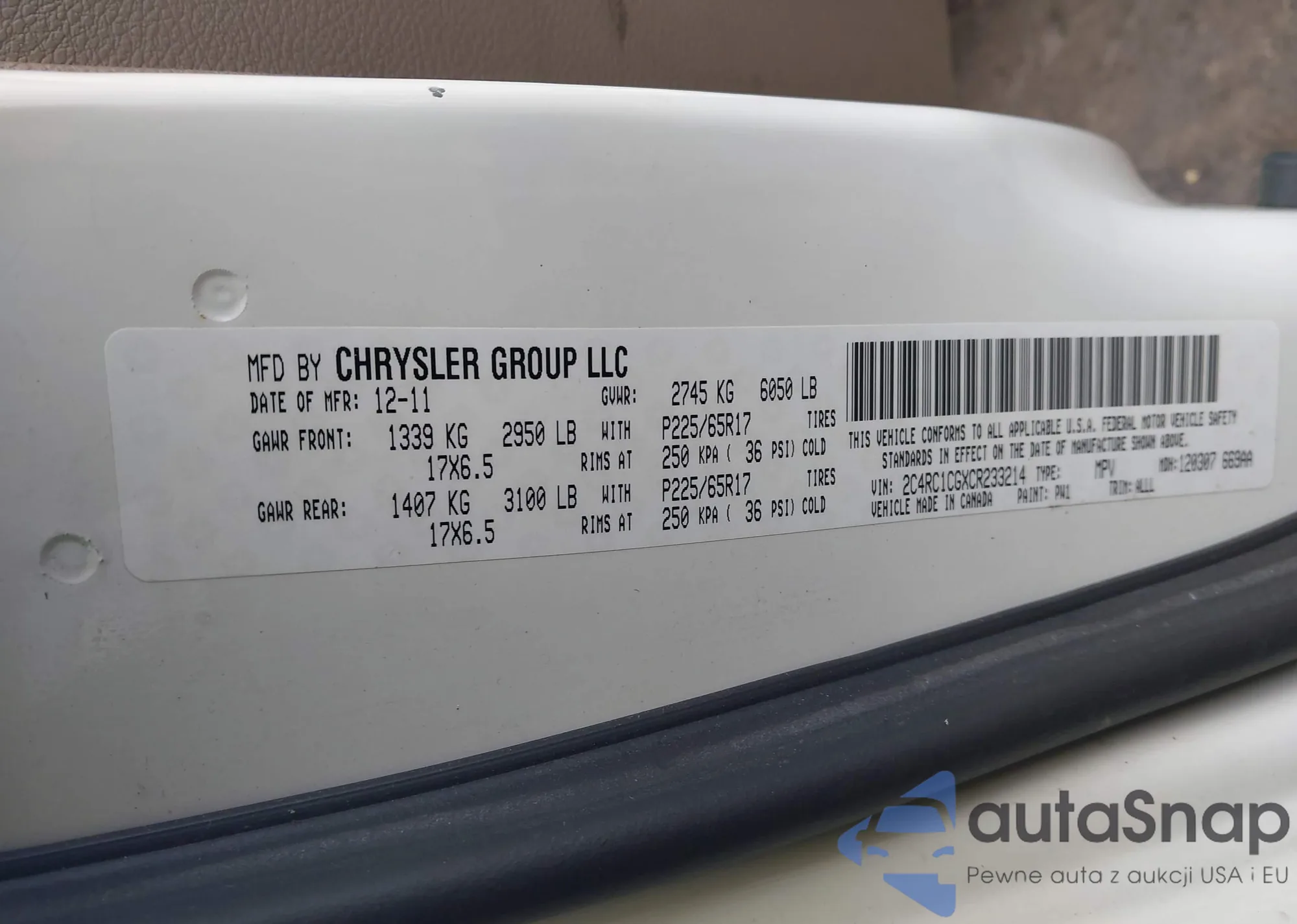 • VIN 2C4RC1CGXCR233214
