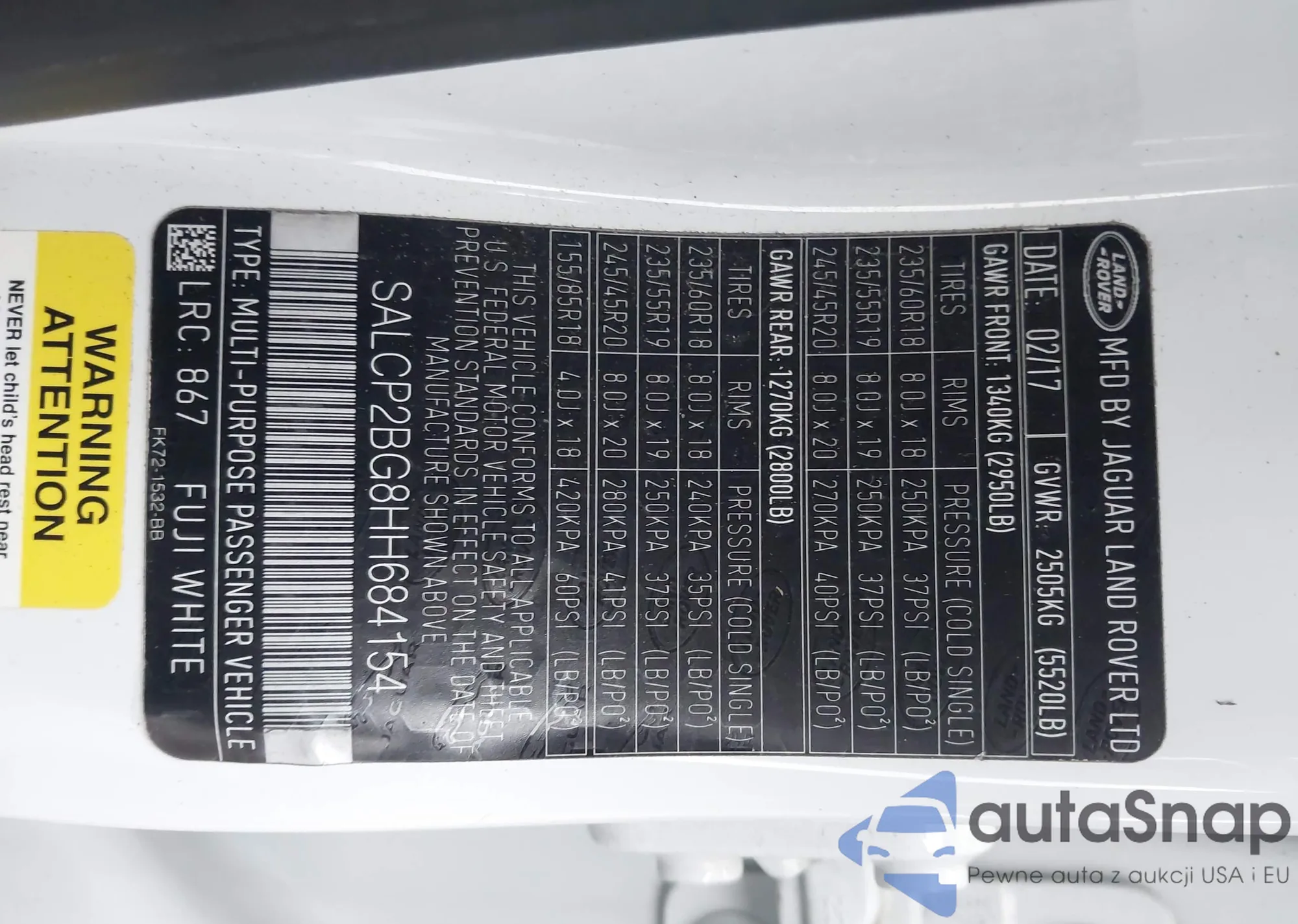 LOT: 43673306 VIN: SALCP2BG8HH684154