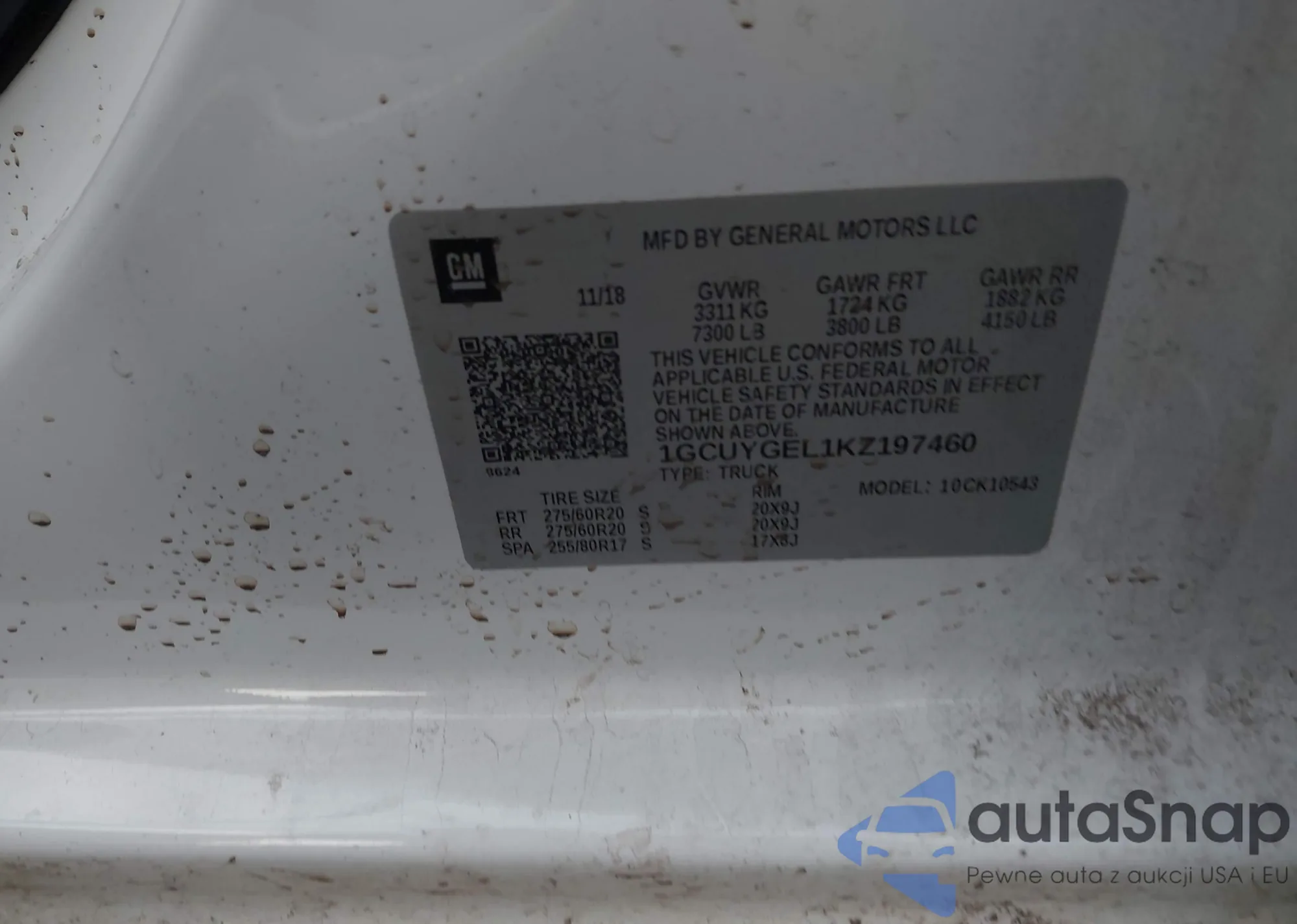 LOT: 43676445 VIN: 1GCUYGEL1KZ197460