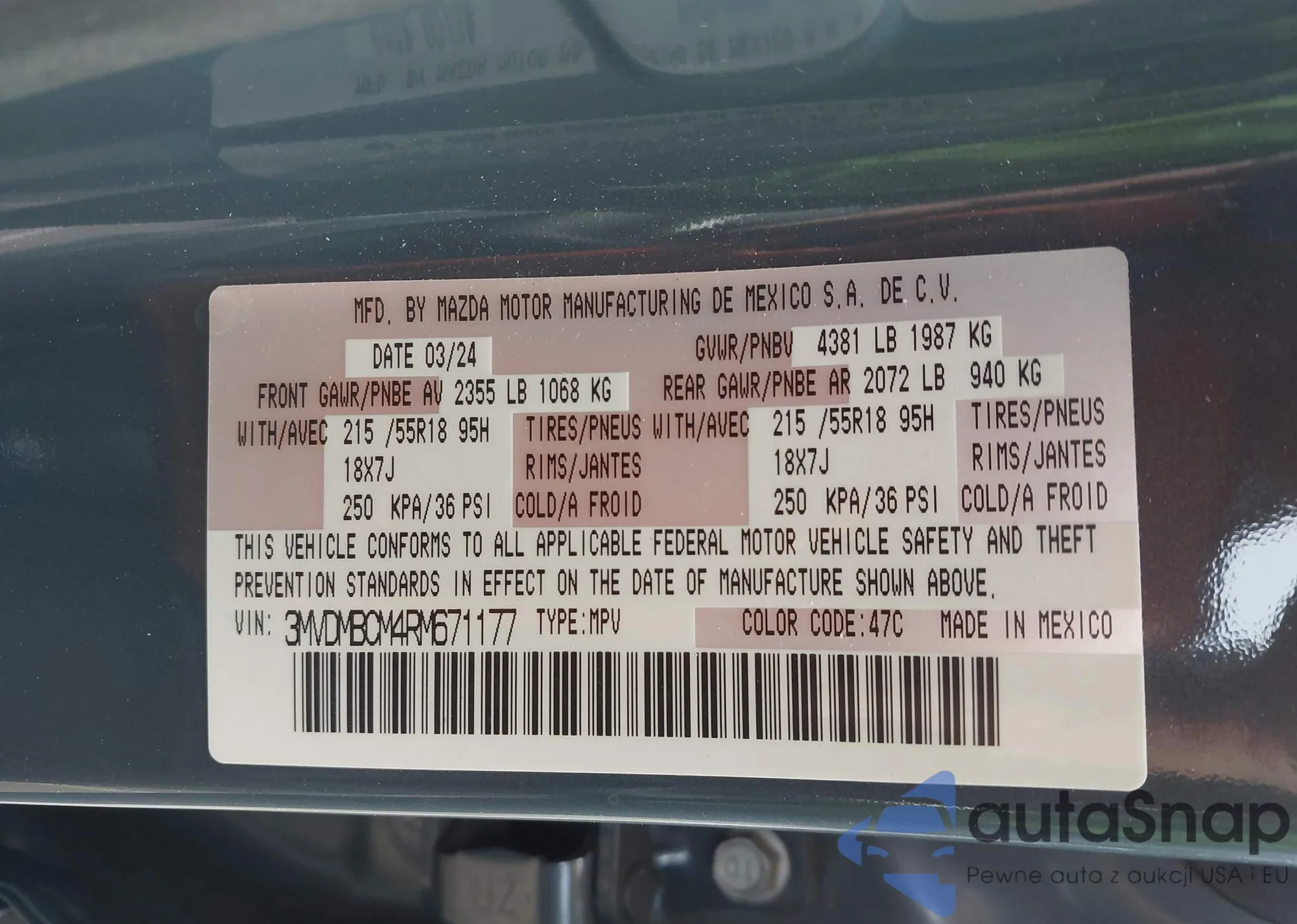 • VIN 3MVDMBCM4RM671177
