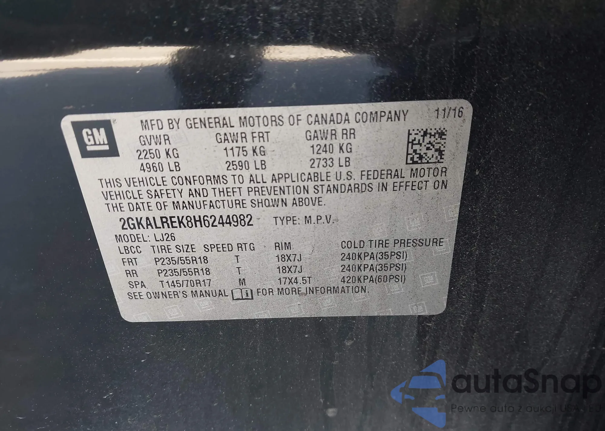 • VIN 2GKALREK8H6244982
