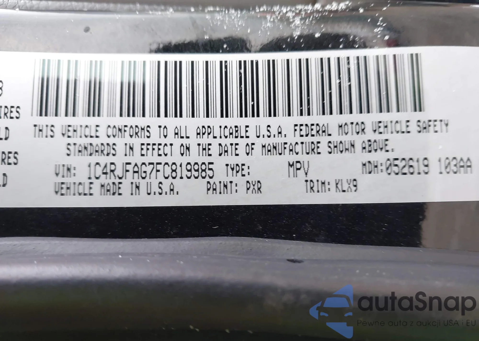 LOT: 43948963 VIN: 1C4PJMDSXFW705277