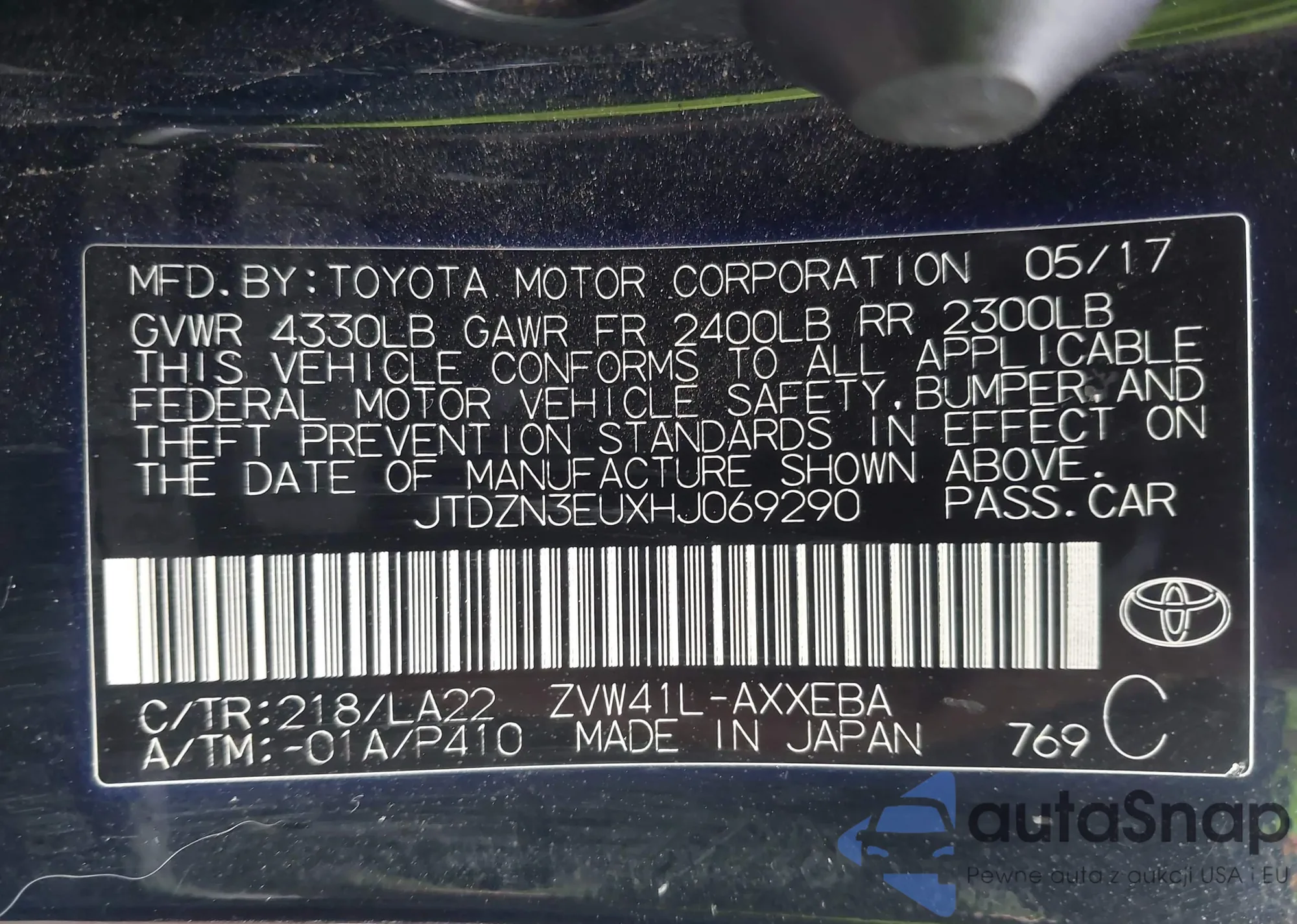 • VIN JTDZN3EUXHJ069290