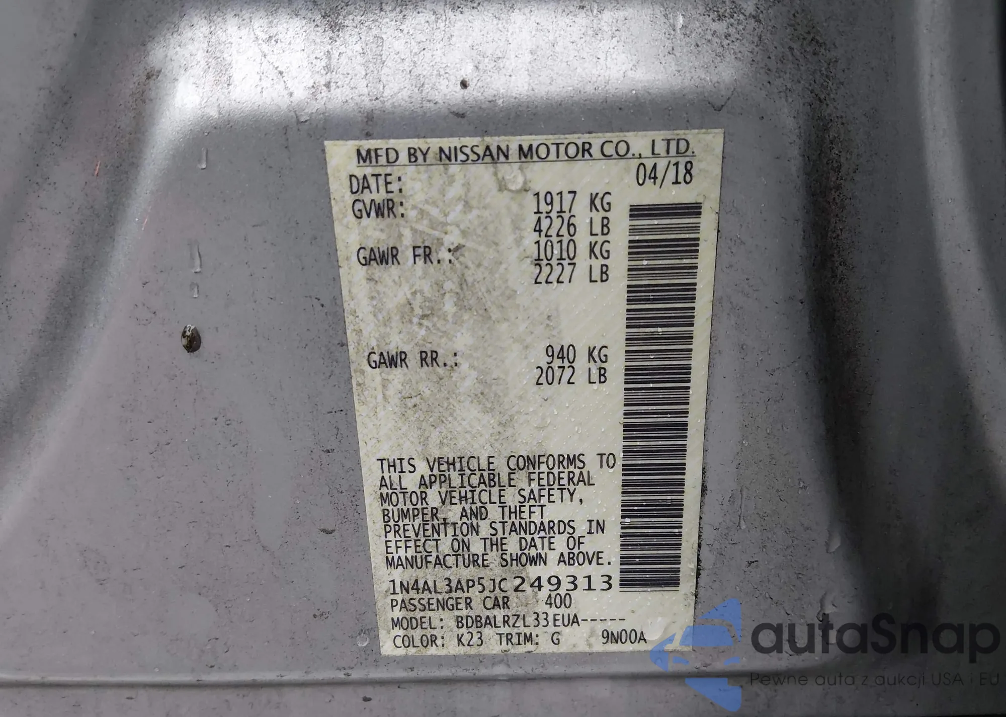 • VIN 1N6AD09UX7C431403