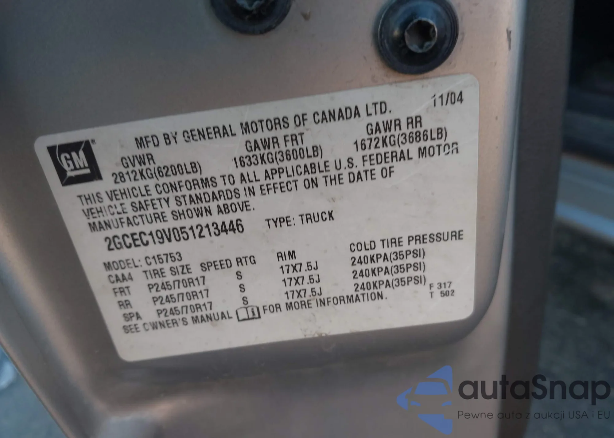 • VIN 2GCEC19V051213446
