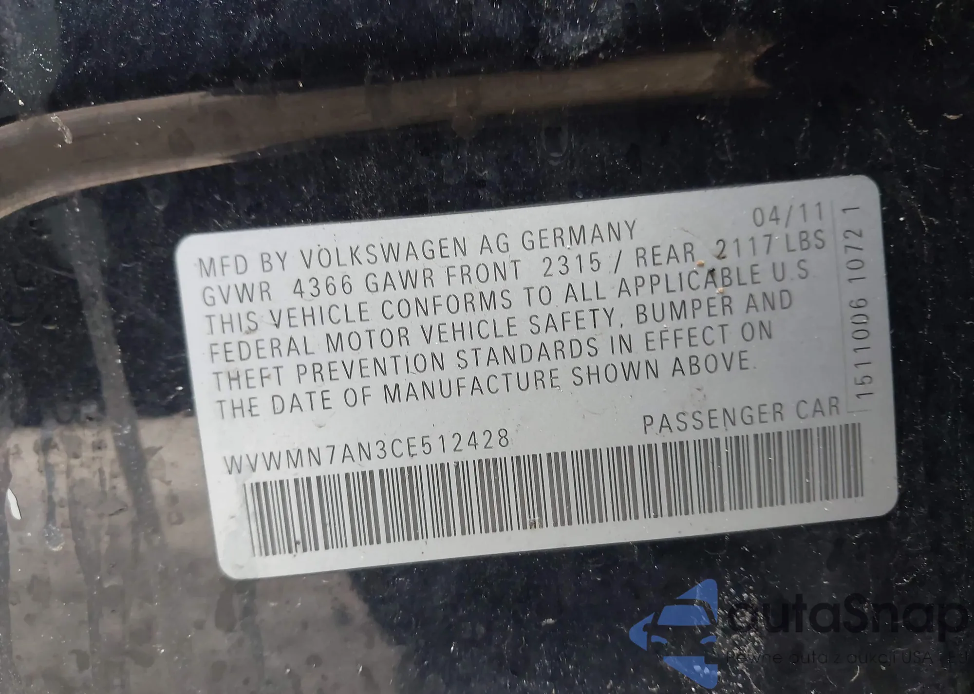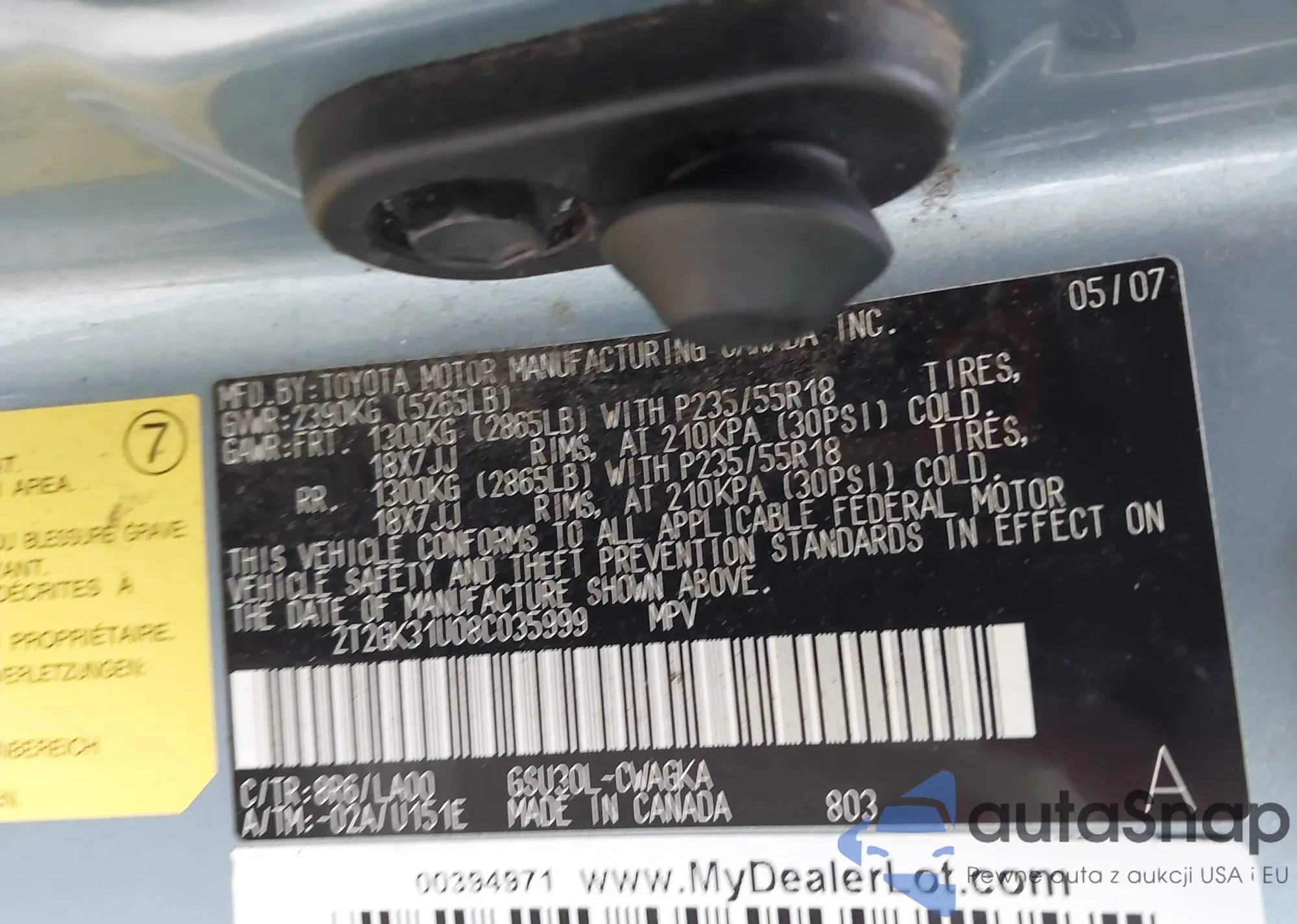 • VIN 4T1BF3EK7AU539546
