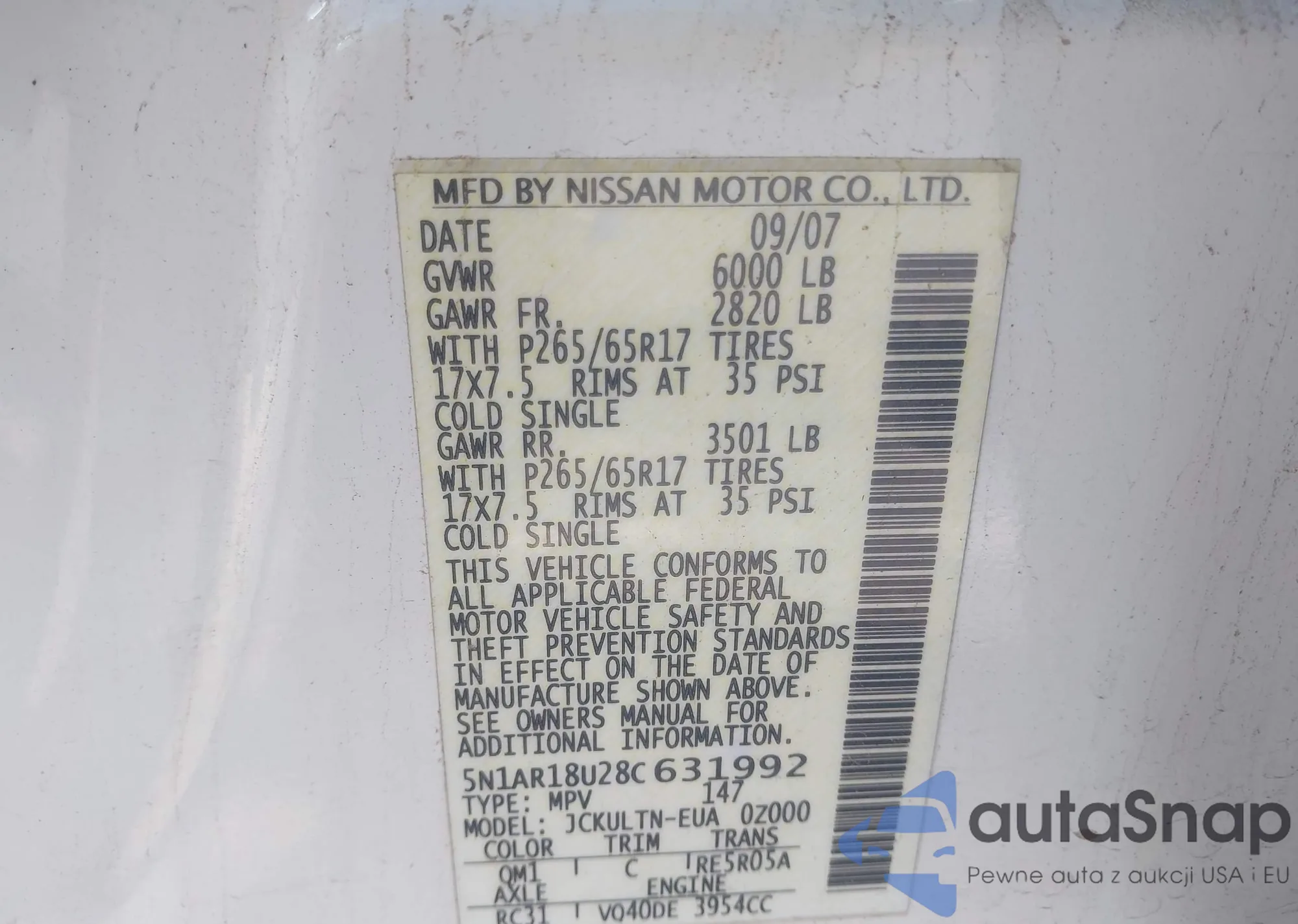 • VIN 1N6AD06U65C400957